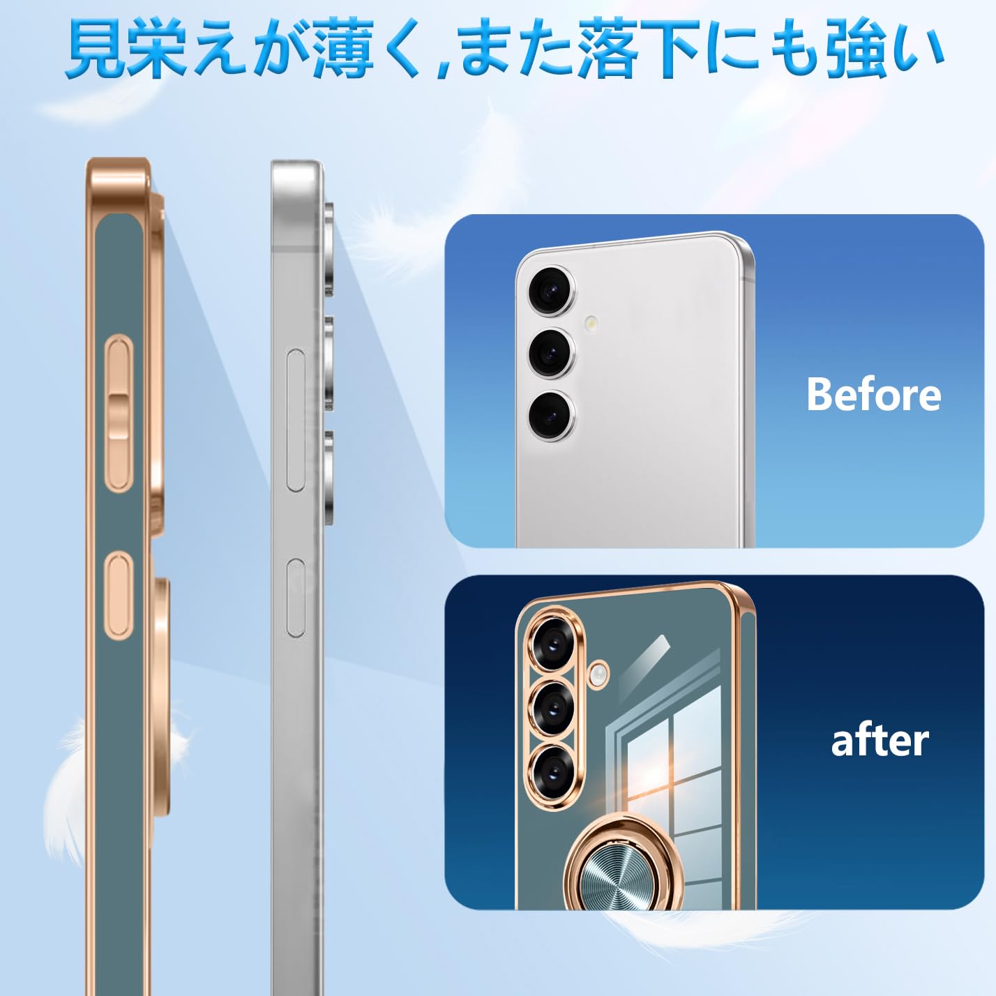 【ソフトマイクロファイバーライニング】ケースの内側はソフトマイクロファイバーで裏打ちされており、電話の背面に傷が付かないようになっています。柔らかい電気メッキシリコンフレーム+金属リングスタンドは、Galaxy s25の金属の質感を作ります。