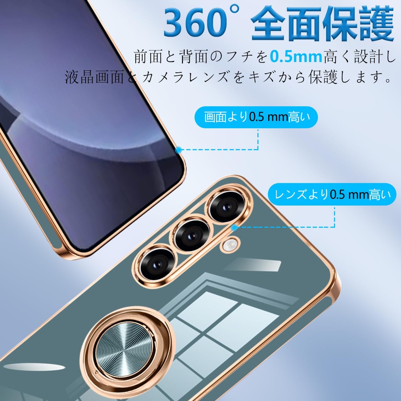 Galaxy S25 ケース リング ギャラクシーs25 SC-51F スマホケース リング付き 耐衝撃 TPU 携帯カバー シリコン スタンド機能付き 360回転車載ホルダー (グレーブルー)