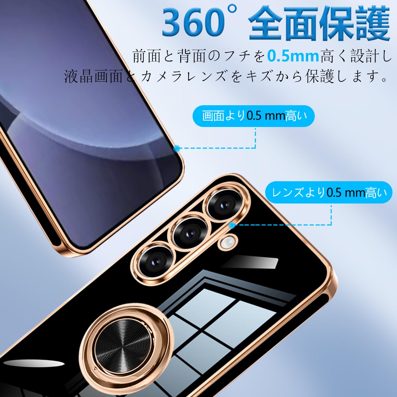 Galaxy S25 ケース リング ギャラクシーs25 SC-51F スマホケース リング付き 耐衝撃 TPU 携帯カバー シリコン スタンド機能付き 360回転車載ホルダー (ブラック)
