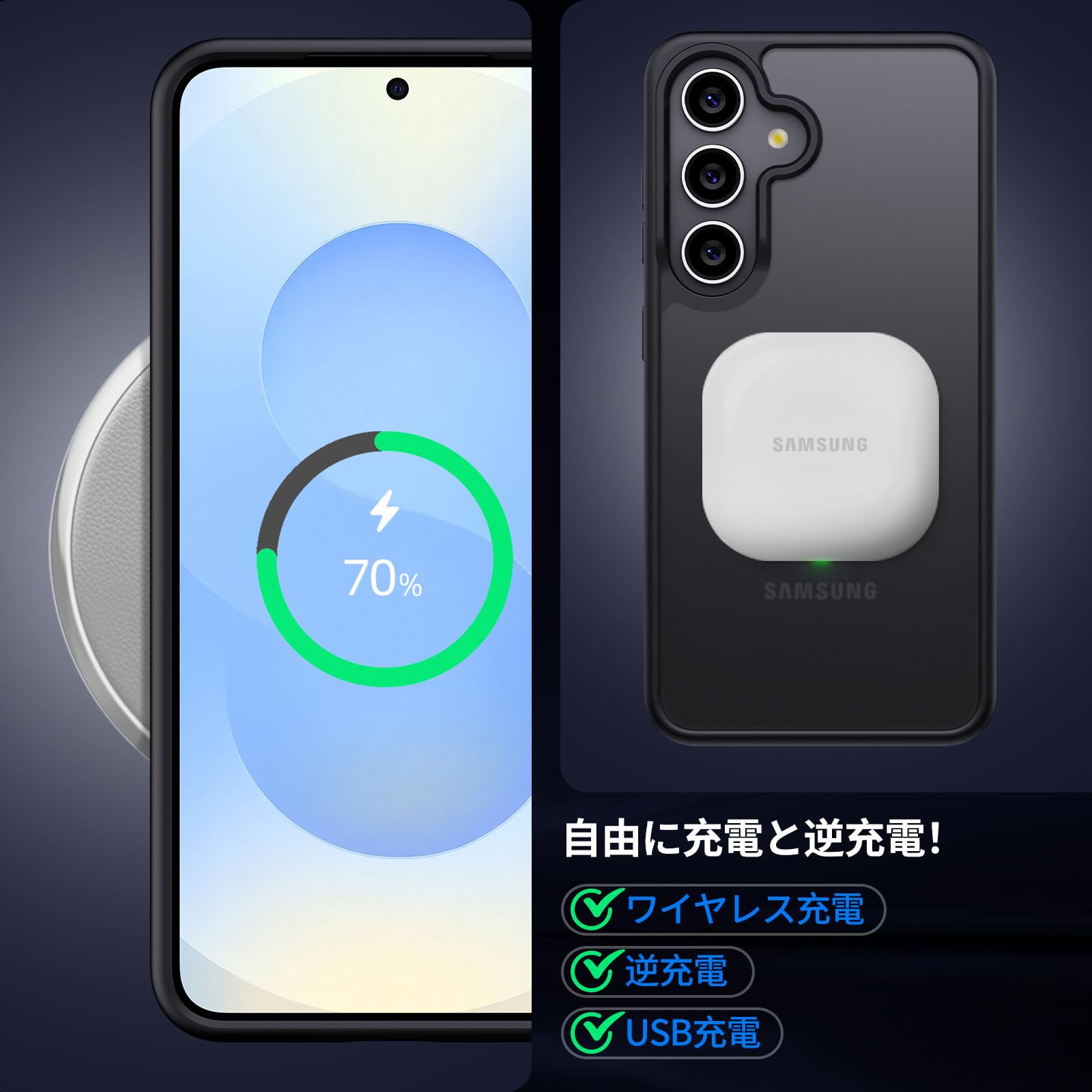 Aunote Galaxy S25/S24 ケース マット半透明 米軍MIL規格 耐衝撃 耐久性 ワイヤレス充電 黄ばみなし 指紋防止 軽量 スマホケース ギャラクシーS25/ギャラクシーS24 ケース カバー ブラック