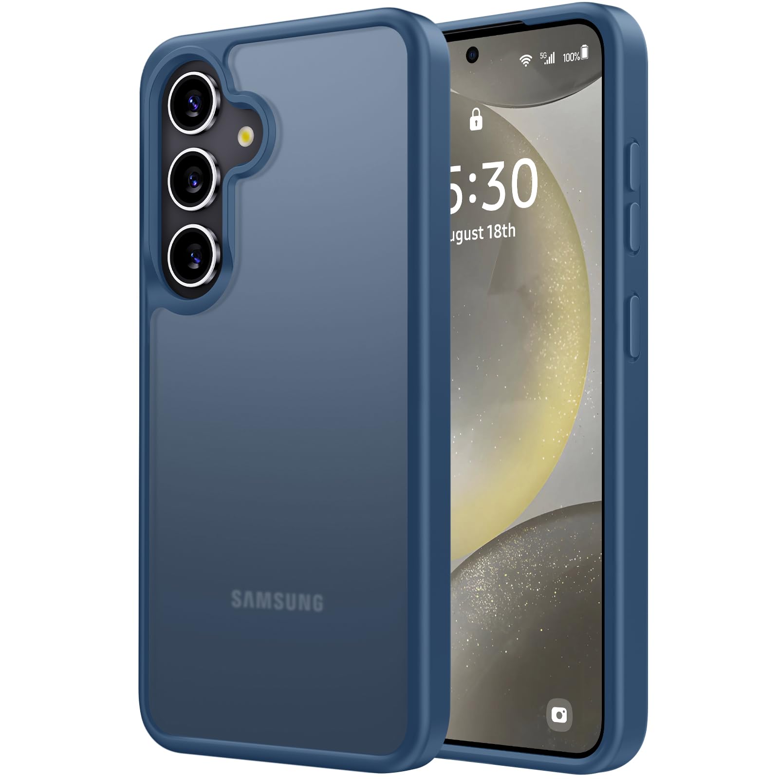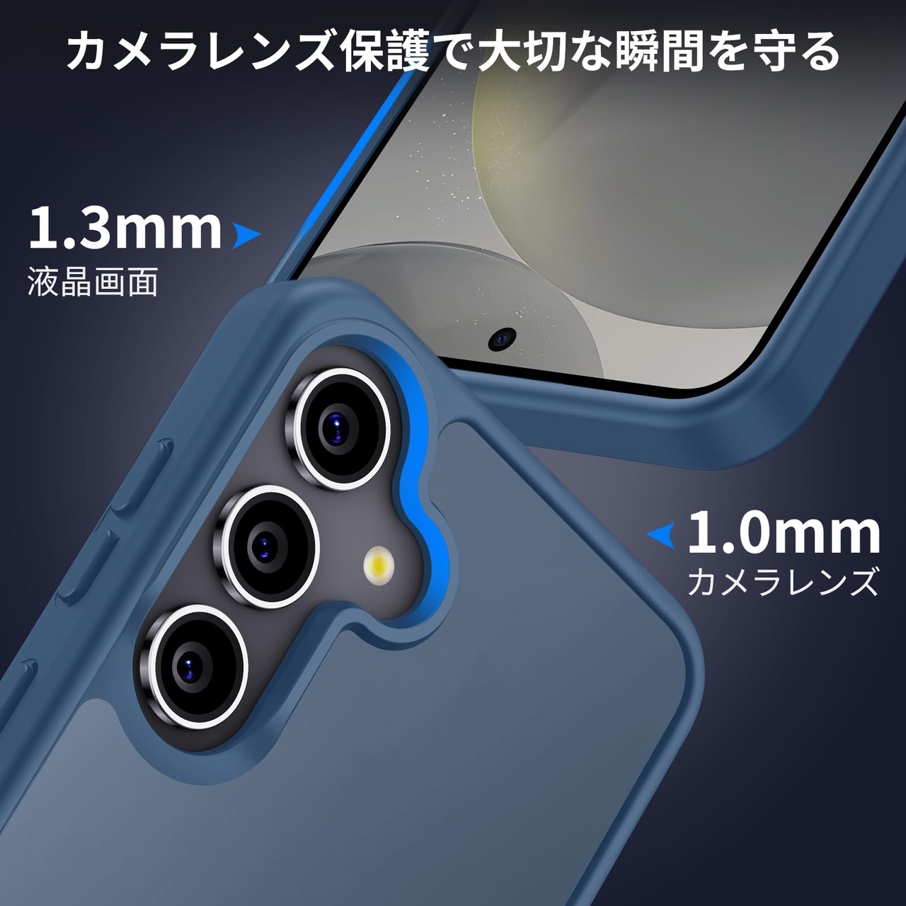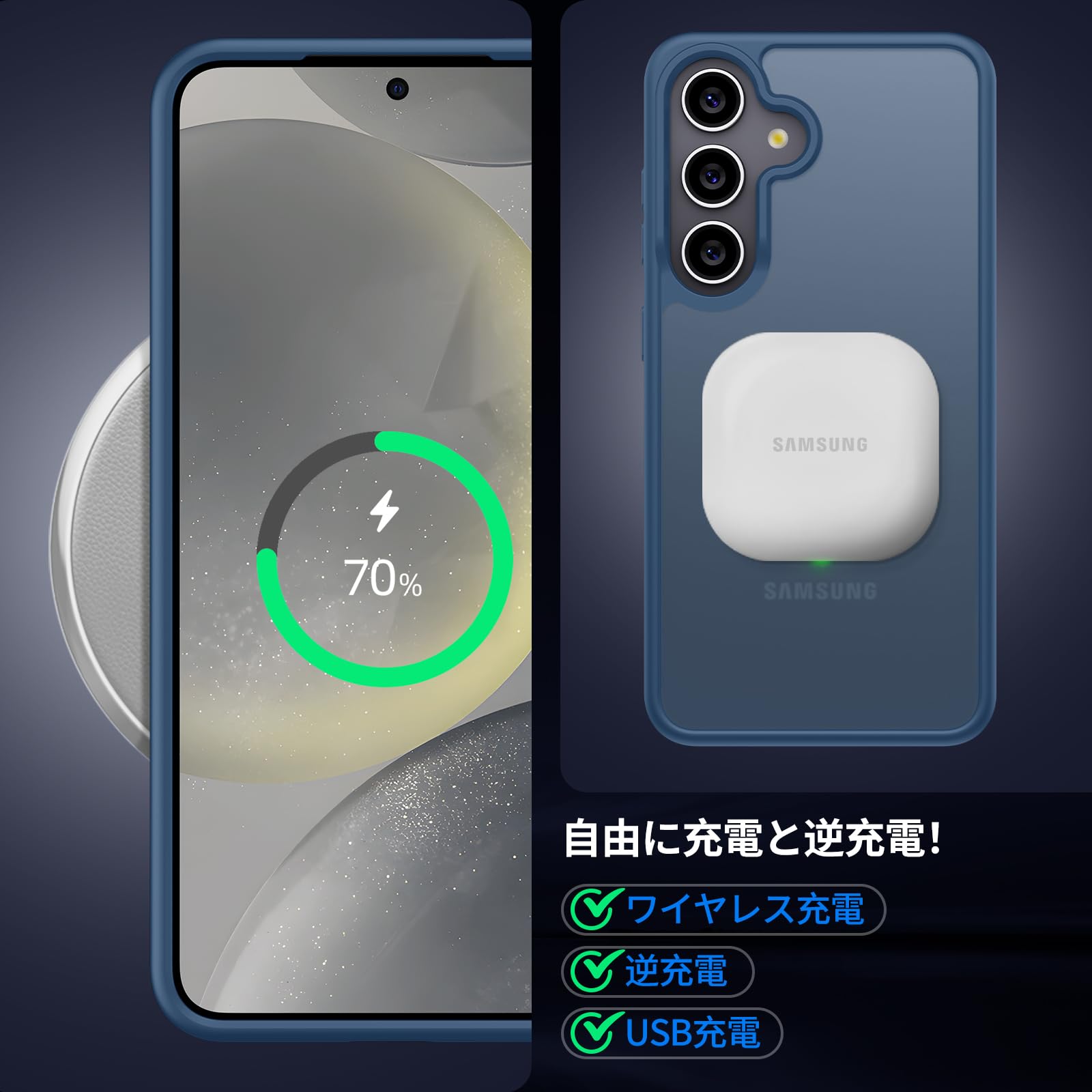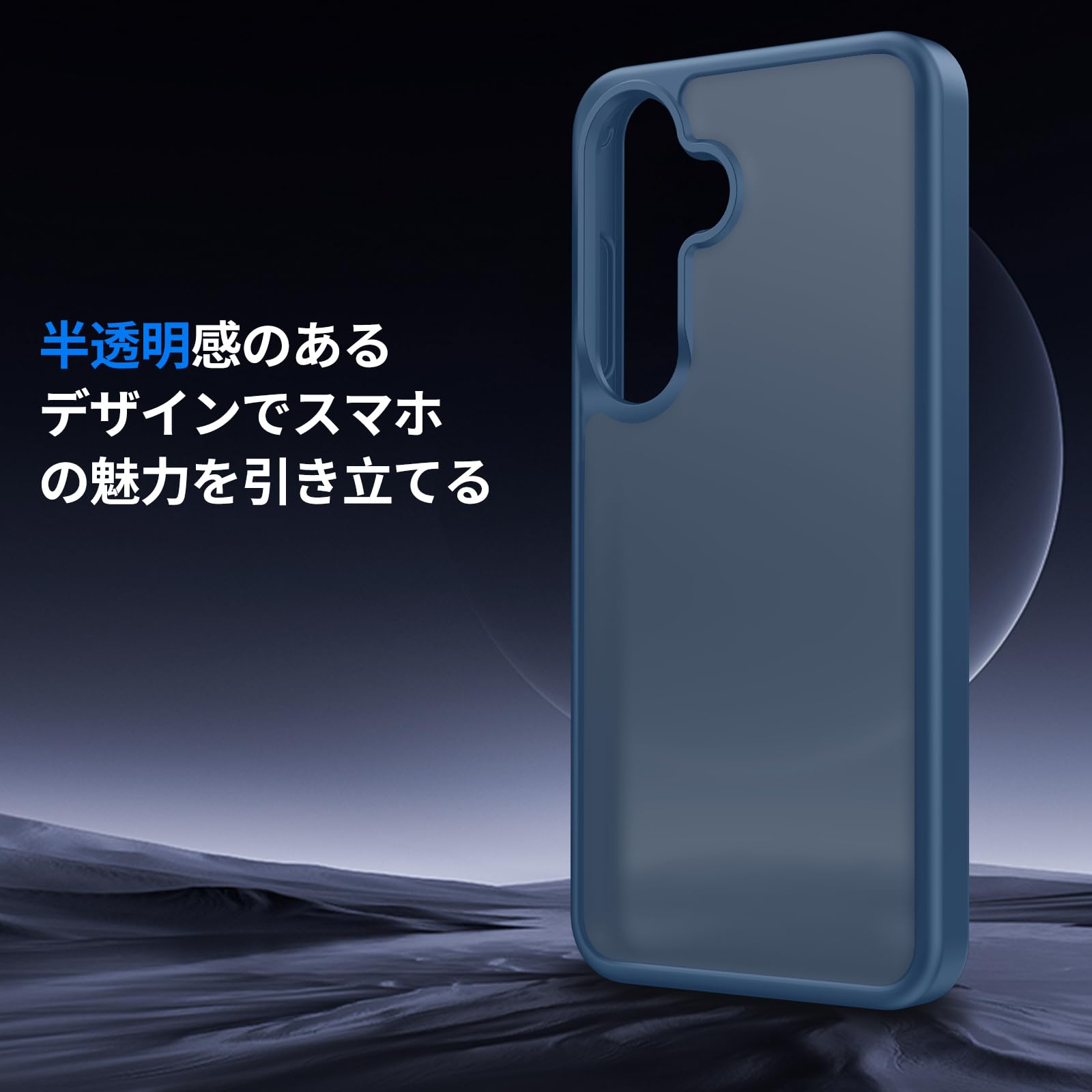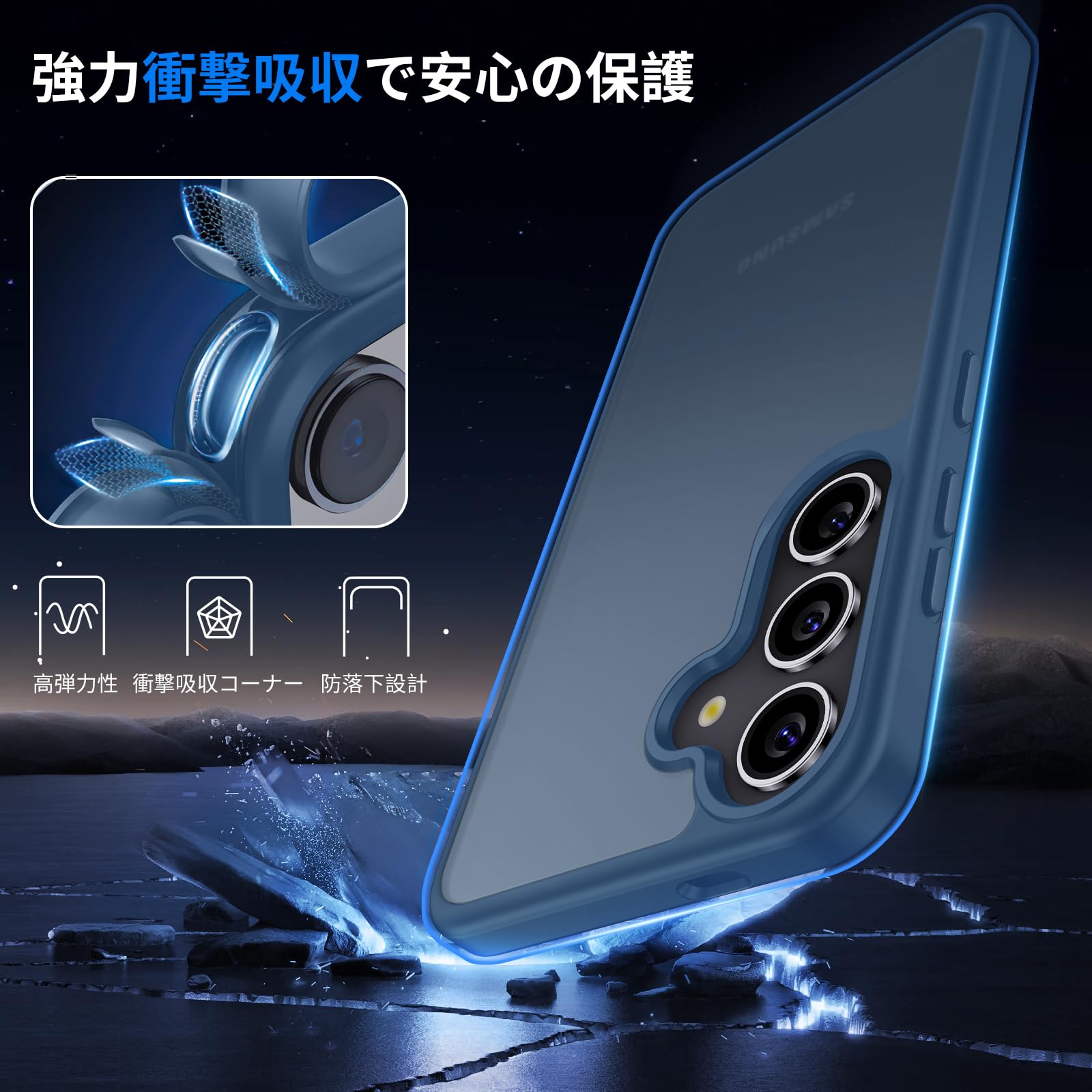 Aunote Galaxy S25/S24 ケース マット半透明 米軍MIL規格 耐衝撃 耐久性 ワイヤレス充電 黄ばみなし 指紋防止 軽量 スマホケース ギャラクシーS25/ギャラクシーS24 ケース カバー ブルー