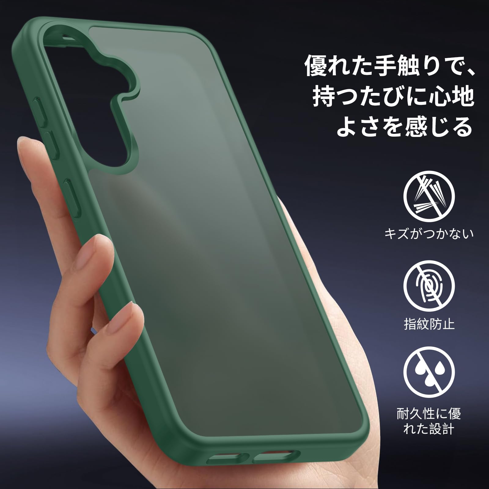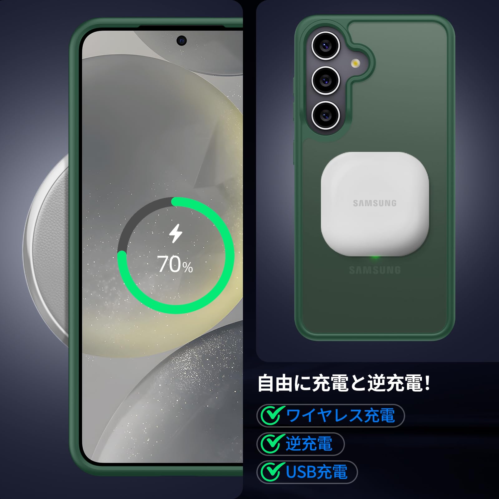 Aunote Galaxy S25/S24 ケース マット半透明 米軍MIL規格 耐衝撃 耐久性 ワイヤレス充電 黄ばみなし 指紋防止 軽量 スマホケース ギャラクシーS25/ギャラクシーS24 ケース カバー グリーン