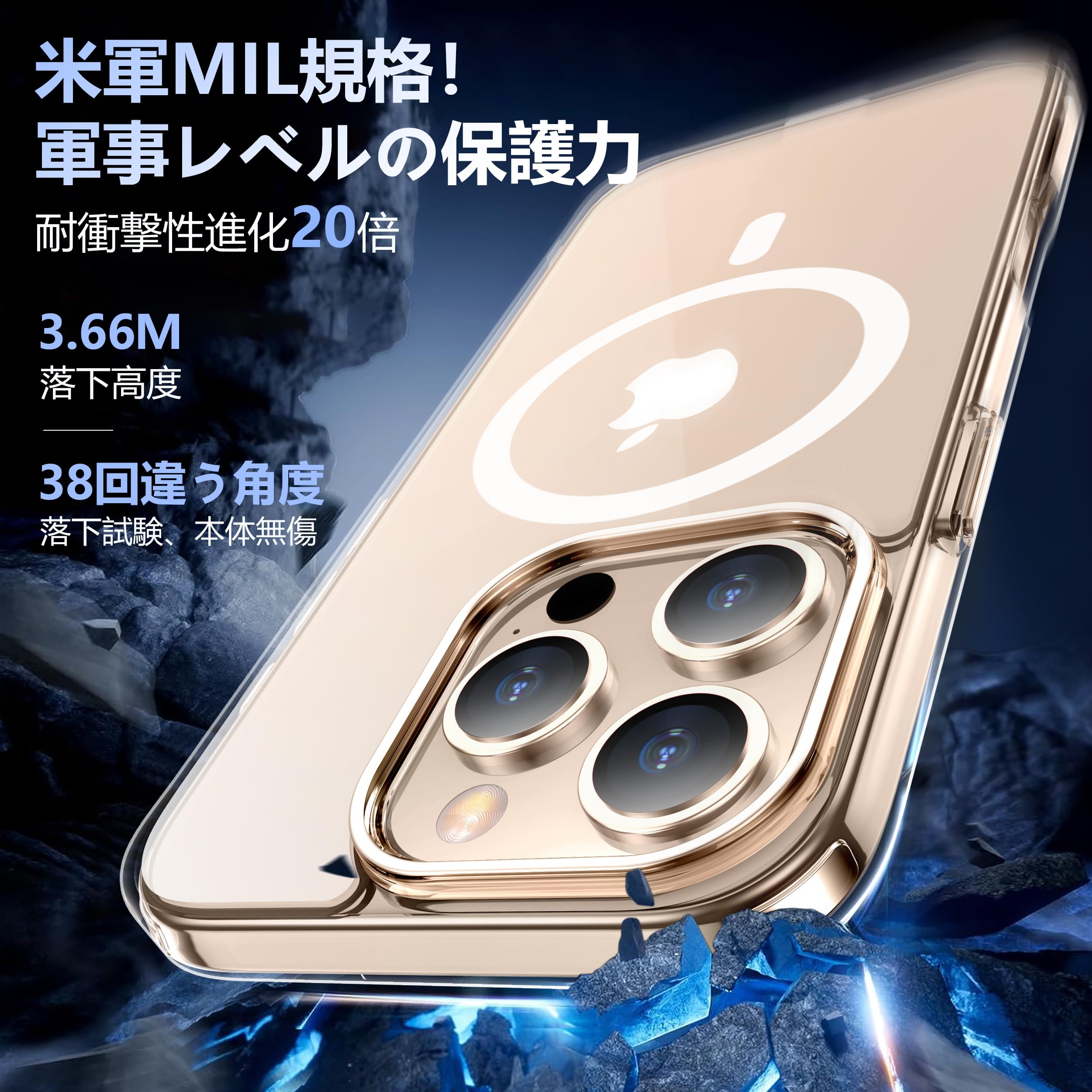 iPhone 16 Pro ケース クリア Magsafe対応 アイフォン16Pro ケース マグネット搭載 米軍MIL規格 耐衝撃 ストラップホール付き 耐久性 黄変防止 いphone16 pro ワイヤレス充電対応 あいほん16Pro SGS認証 PC背面 スマホケース アイフォン16プロ カバー 透明 6.3インチ