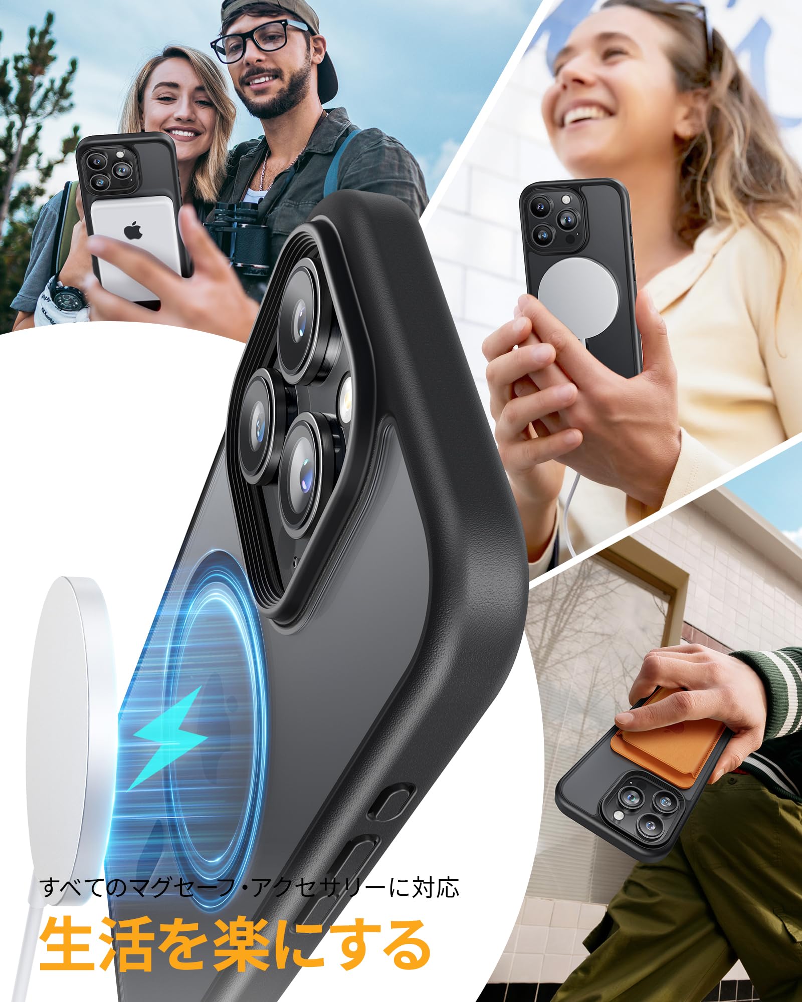 【強力な磁力吸着・高速充電体験】強力なマグネット搭載で差し込みのいらない超簡単充電を実現しました。マグネットによる正確な位置合わせで、ワイヤレス充電がこれまでよりもすばやく簡単に完了します。iPhone16Proを充電する時は、ケースを装着したままMagSafe充電器に取り付けるか、Qi規格の充電器の上に置くだけです。対応機種:いPhone16Pro ケース