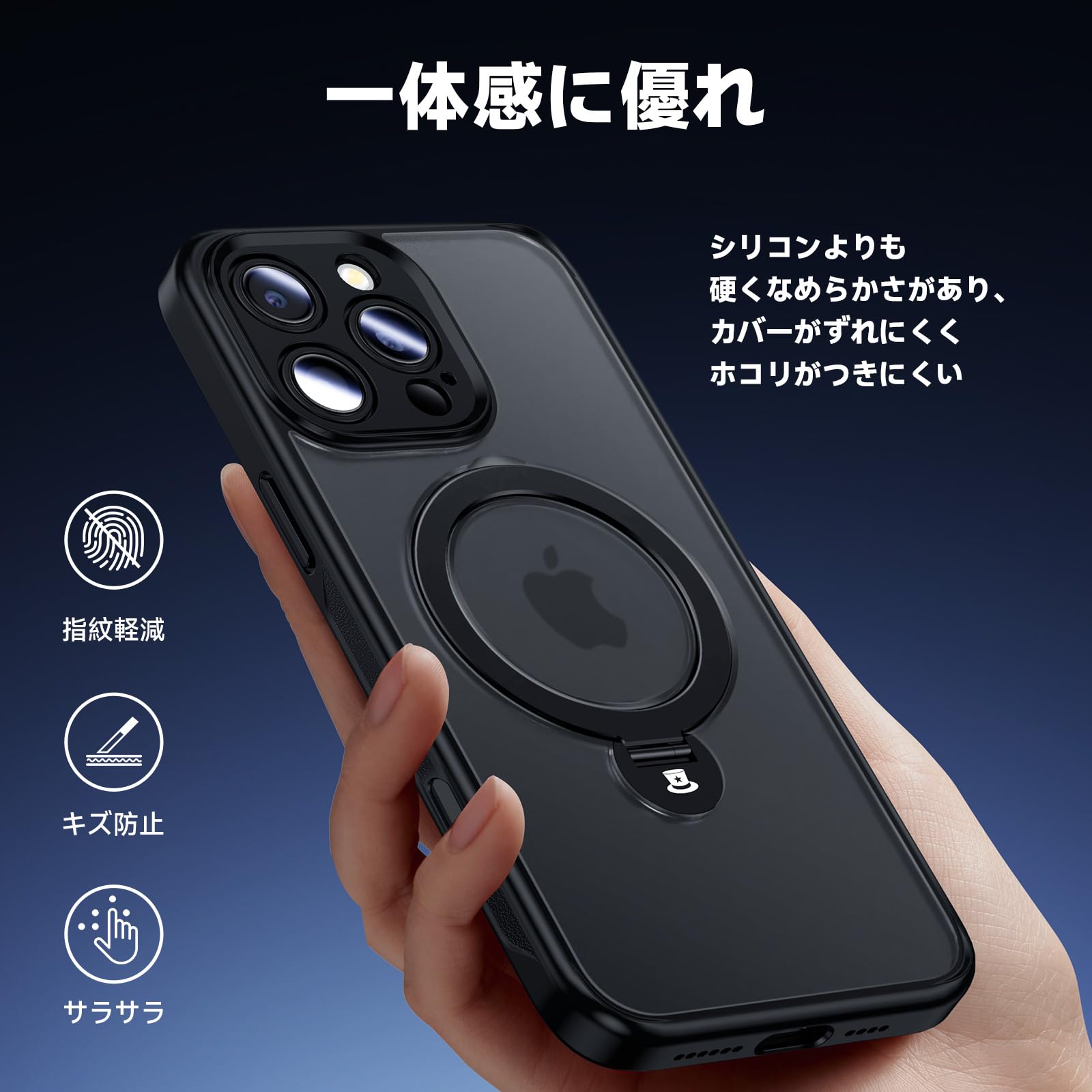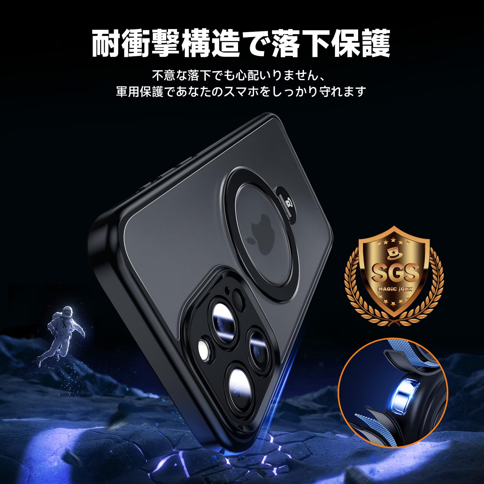 【特価在庫】Magic John iPhone 16 Pro 用 ケース 耐衝撃 MagSafe対応 ワイヤレス充電 スタンド付き 360°回転 滑り止め いphone16 Pro 用 ケース 半透明 カメラ保護 TPU ズレにくい ホコリ付きにくい スマホケース iphone 16 Pro 用 ブラック | GIGATERA