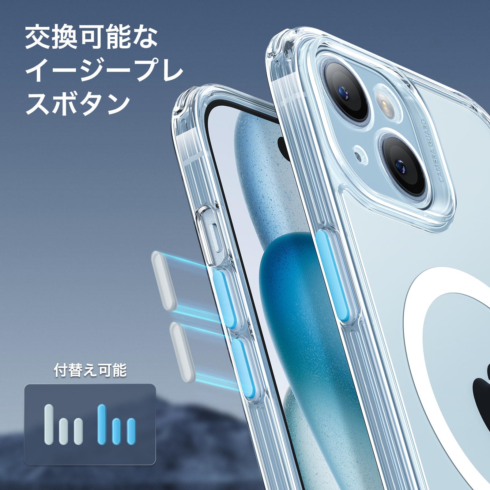 【簡易ボタン付き・付替え可能】全新のボタン体験を楽しむ!iphone 15plusのボタンに対応した精確なカット加工と、押しやすいボタン設計により、機能性がしっかり保たれます。カラフルな簡易ボタンでお好みのスタイルに付替えできます。溝のあるデザインにより、熱の放散が速いため、スマホ軽量に保ちながら、オーバーヒートによるスマホの動作遅れを軽減します