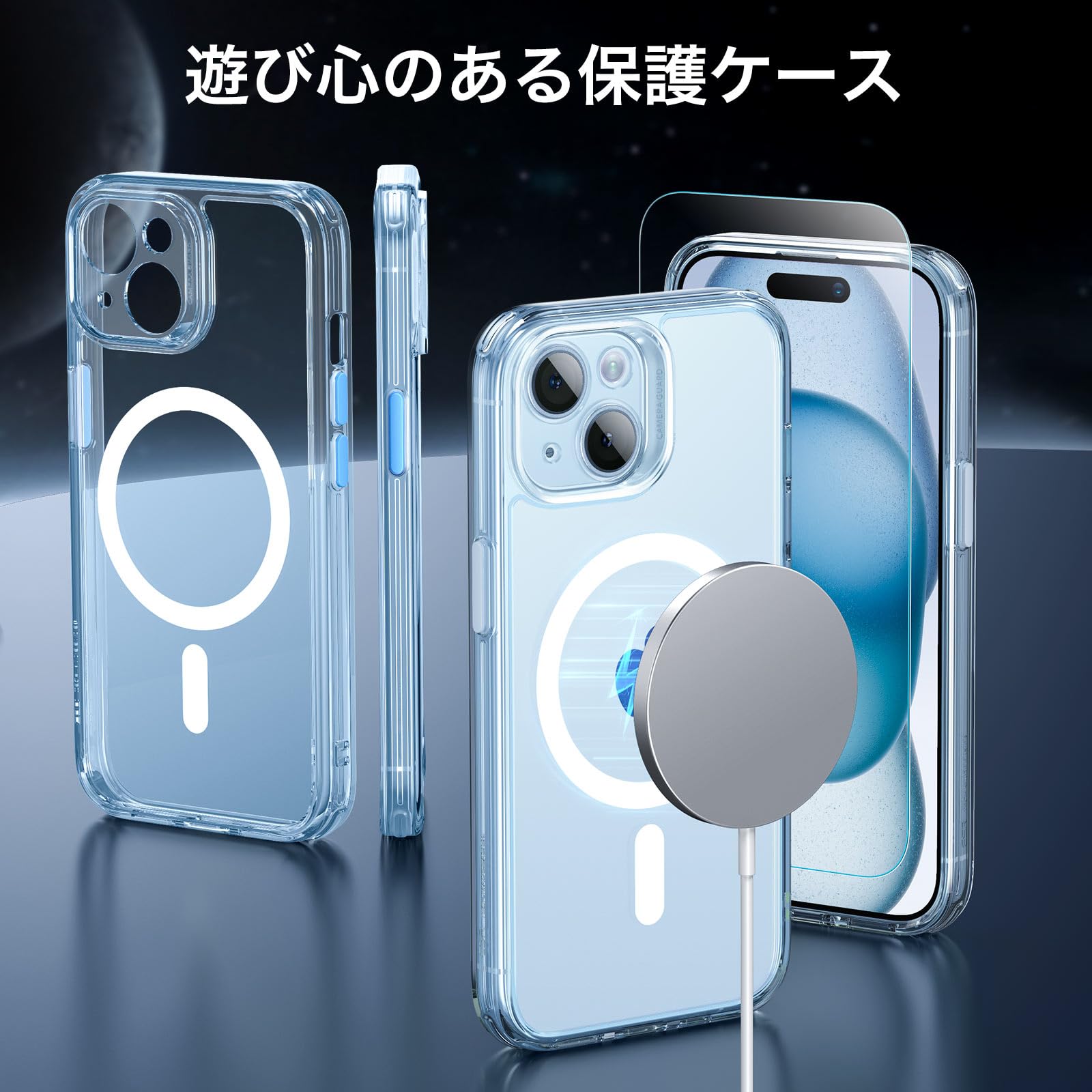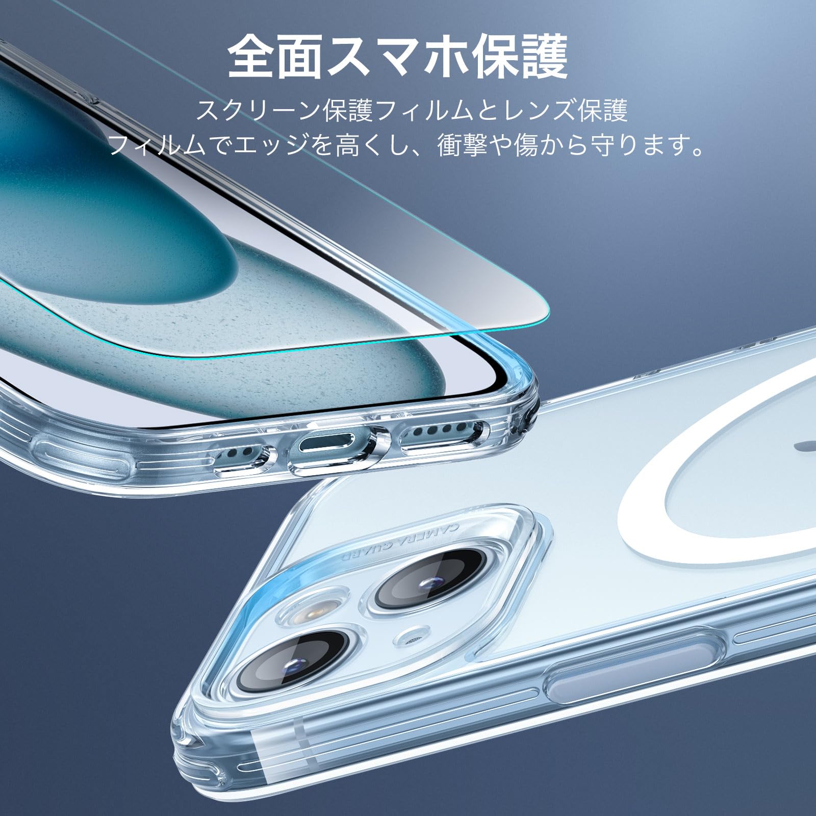 【在庫処分】【米軍MIL規格・Magsafe対応】 ESR iPhone 15 Plus ケース セット 画面保護フィルム カメラ保護 傷に強い背面 ワイヤレス充電 ストラップホール付き Classicシリーズ いphone15plus ケース フロストブルー | GIGATERA