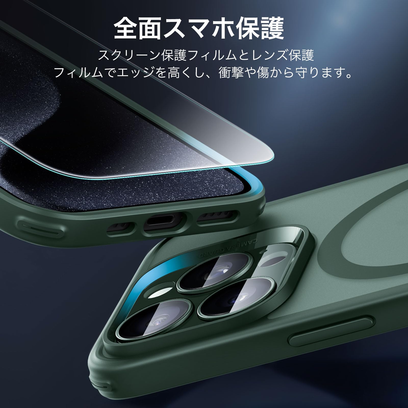 【米軍MIL規格・全面保護】iPhoneを落としても安心!iphone 15 pro max ケース magsafeは、高硬度・高耐傷性に誇り亜鉛合金素材を厳選されており、衝撃吸収エアガードコーナーと強化ガラス画面保護フィルムとカメラレンズ保護フィルムを組み合わせることでスマホを完全に保護します