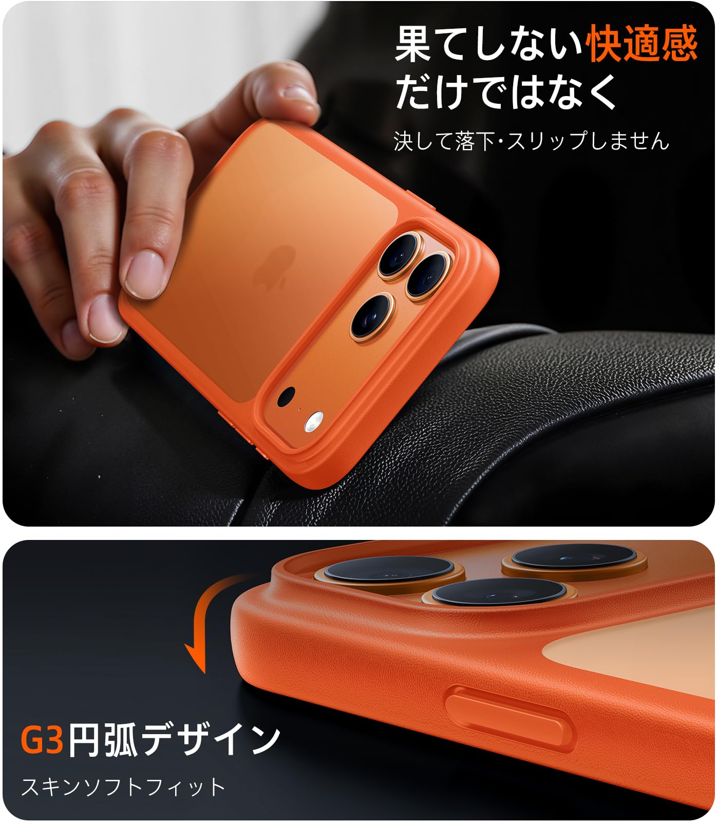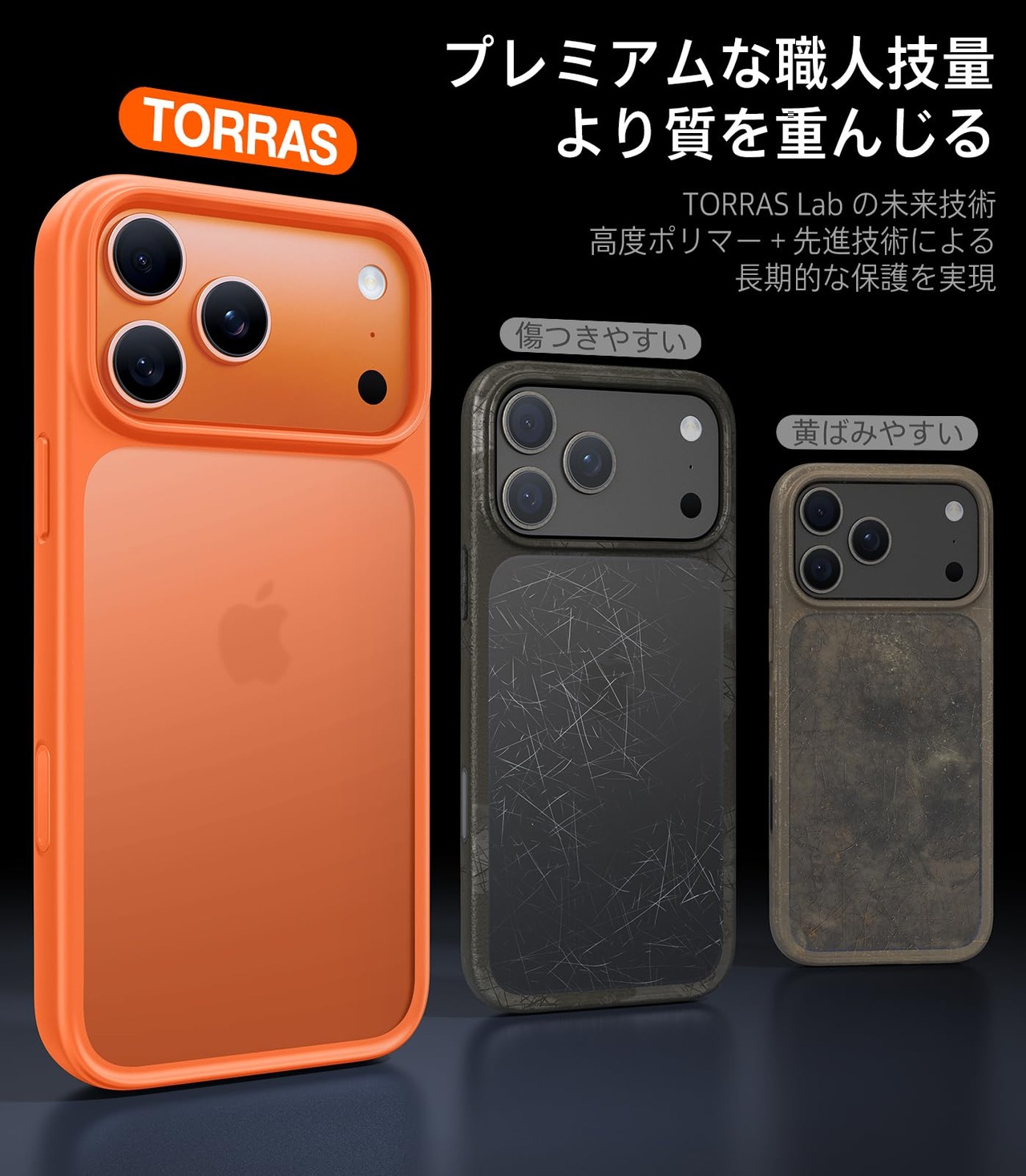 【特価】TORRAS iPhone17Pro 用 ケース 【米軍規格 3倍耐衝撃 半透明】 マット カメラコントロール保護 ストラップホール付き ワイヤレス充電対応 MagSafe非対応 滑り止め 指紋防止 For いPhone17 Pro ケース 6.3インチ プロ 「Guardian」 オレンジ | GIGATERA