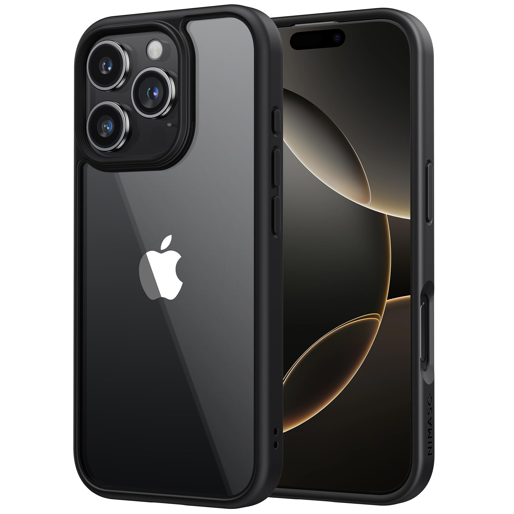 NIMASO iPhone16Pro用ケース クリア 黄変防止 耐衝撃 米軍MIL規格 SGS認証 PC背面 いPhone16Pro対応 傷つけ防止 超薄型 軽量 ワイヤレス充電対応 ストラップホール付き アイフォン16プロ対応 (6.3インチ)スマホケース(氷星シリーズ)ブラック NSC24G1473