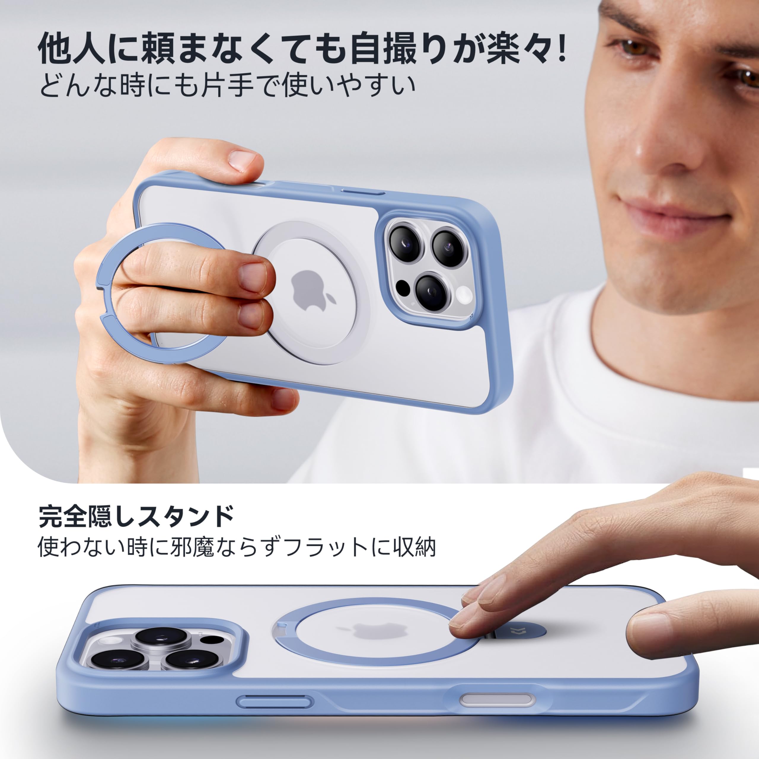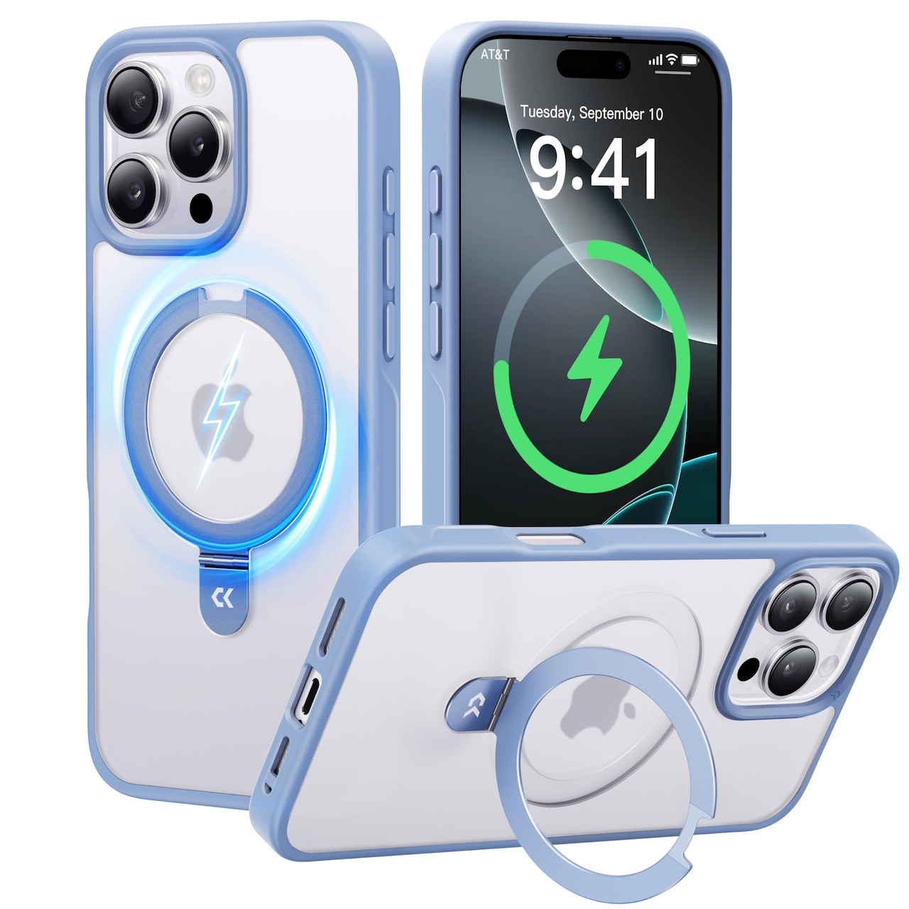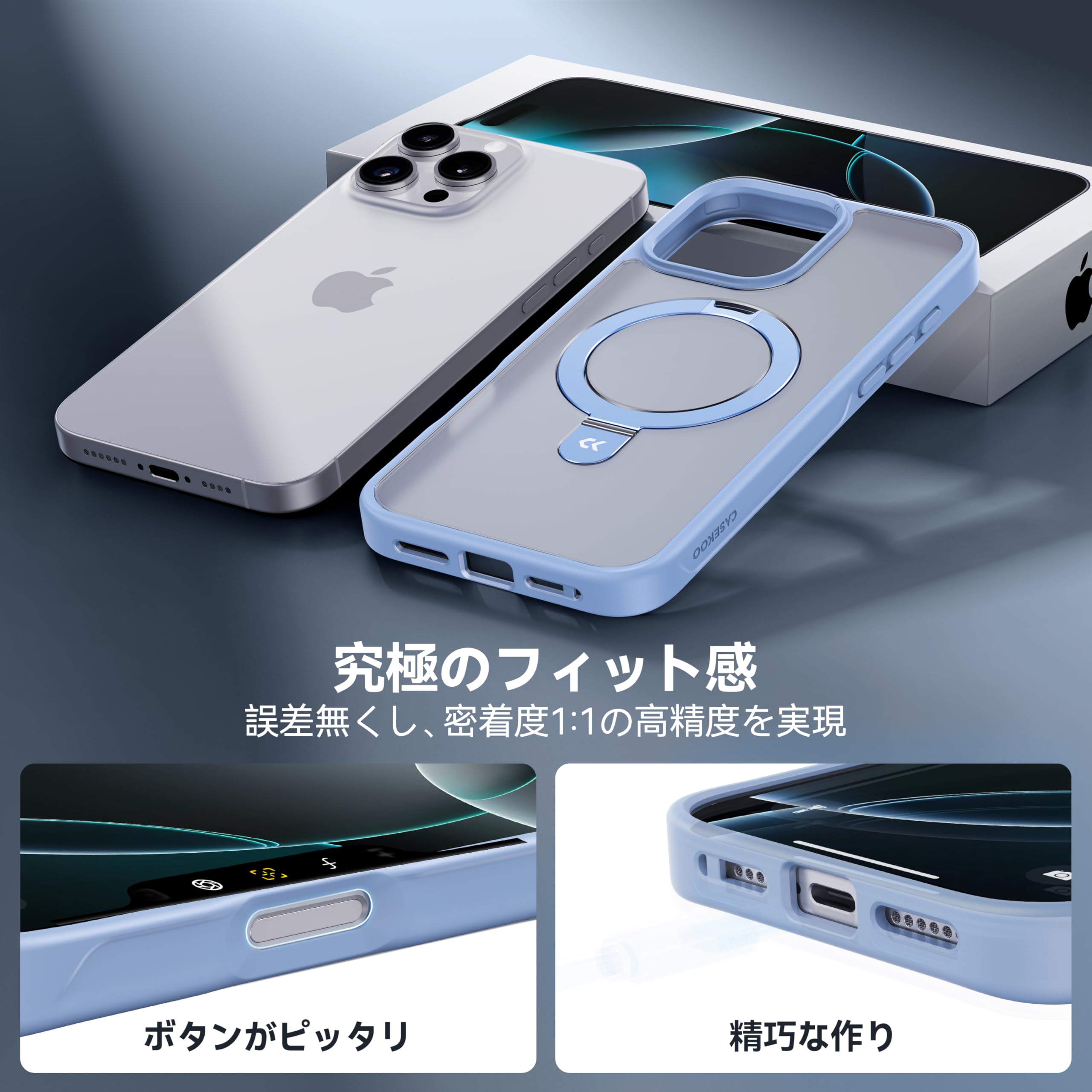 【8年間の技術結晶!4in1超万能モデル】CASEKOO iPhone 16 Pro 用 ケース 米軍MIL規格 横縦両立 指紋防止 マット仕上げ 最大25W急速充電対応 MagSafe対応 黄変防止 半透明 ストラップホール付き ワイヤレス充電対応 いphone16pro 用ケース 6.3インチ「MagicStand」(ライトブルー)