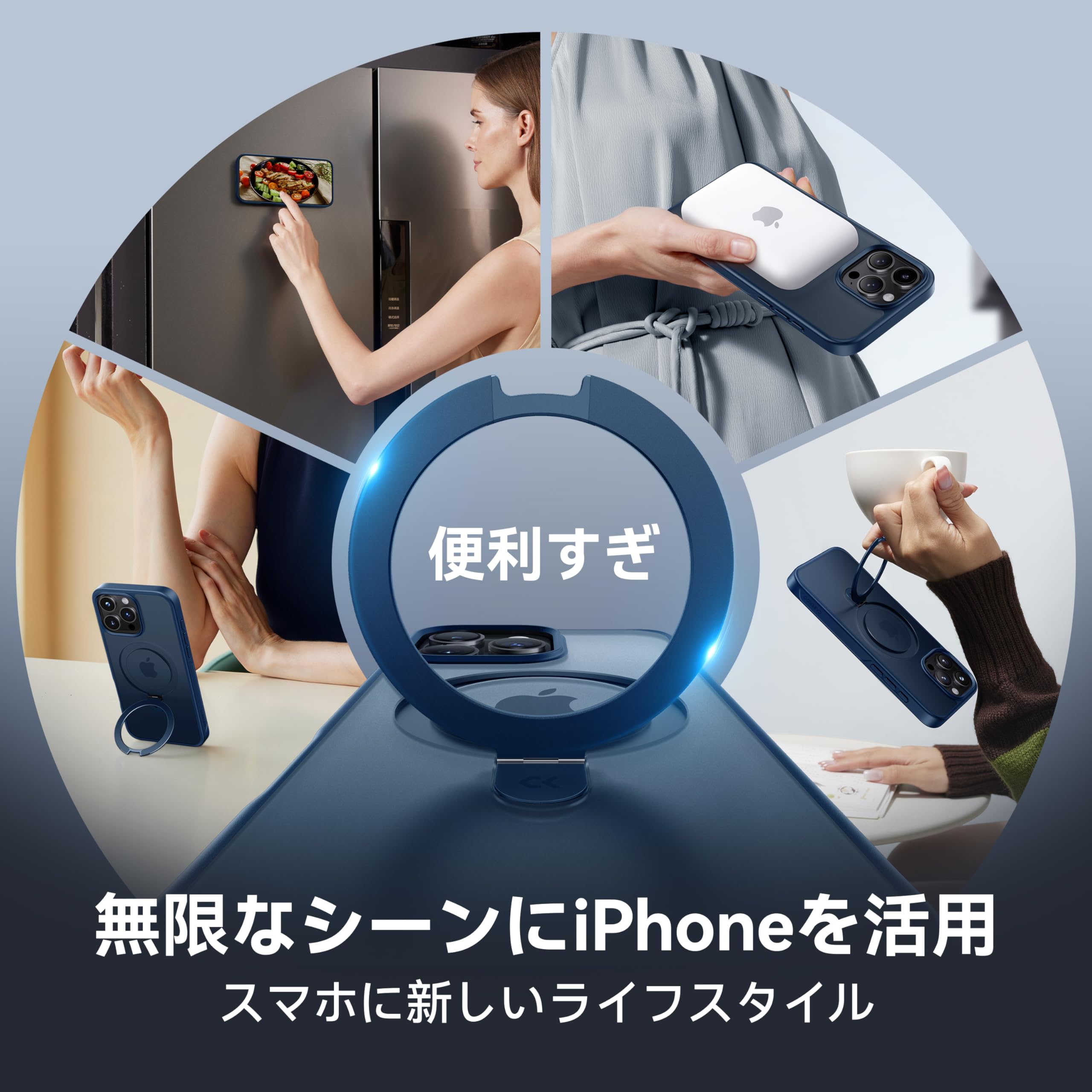 【スゴすぎる!多機能スタンド】のMagicStandシリーズは、タテヨコどちらもOKのスタンド機能とリング機能とMagsafe充電対応も追加。品質、機能性、デザイン性の全てを高い基準で満たす、シーンや性別を選ばないケース。スタンドとして使用すると、画面が見やすい角度で固定でき、動画鑑賞やテレビ電話などが自然で快適に行えます。また高品質な材料と特許な技術が採用され、30,000回の開閉テストをクリアし、リングの部分緩みを一気に解消!従来品に比べて約10倍の長寿命化になり、圧倒的な耐久性と強度を実現されます。材質・形状・加工に徹底的にこだわり、スマホを快適に操作するように仕上げます。