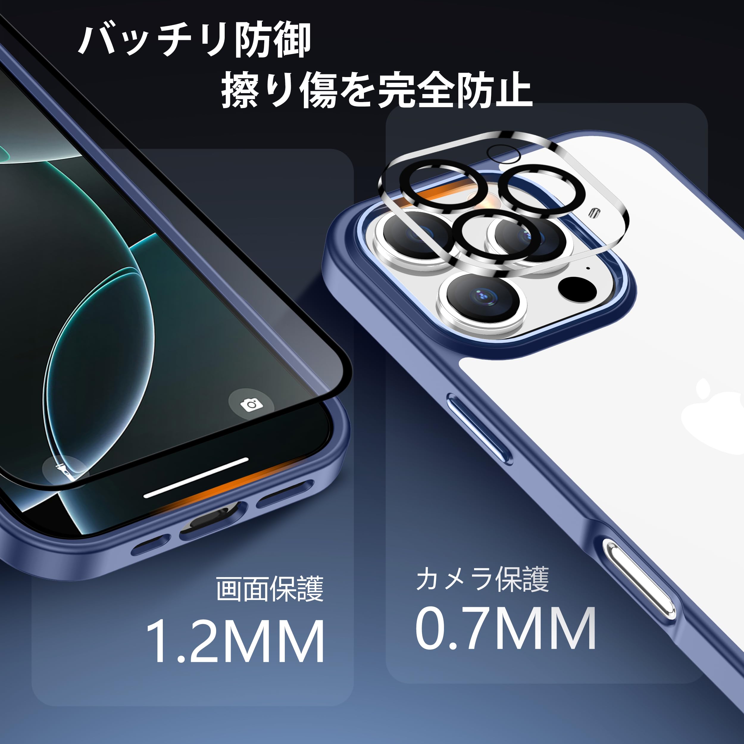 【数量限】iPhone 16 Pro ケース ブルー レンズ・ガラス保護付き 黄変防止 アイフォン16 プロ用 耐衝撃 アイフォン 16 ぷろ用 指紋防止 落下防止 耐久性 ストラップホール付き 薄型 軽量 ソフト ワイヤレス充電対応 アイホン16pro(6.3インチ)カバー | GIGATERA