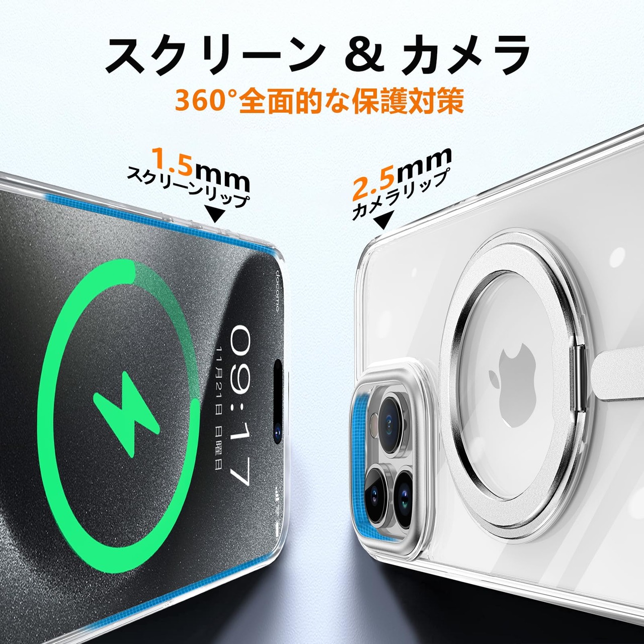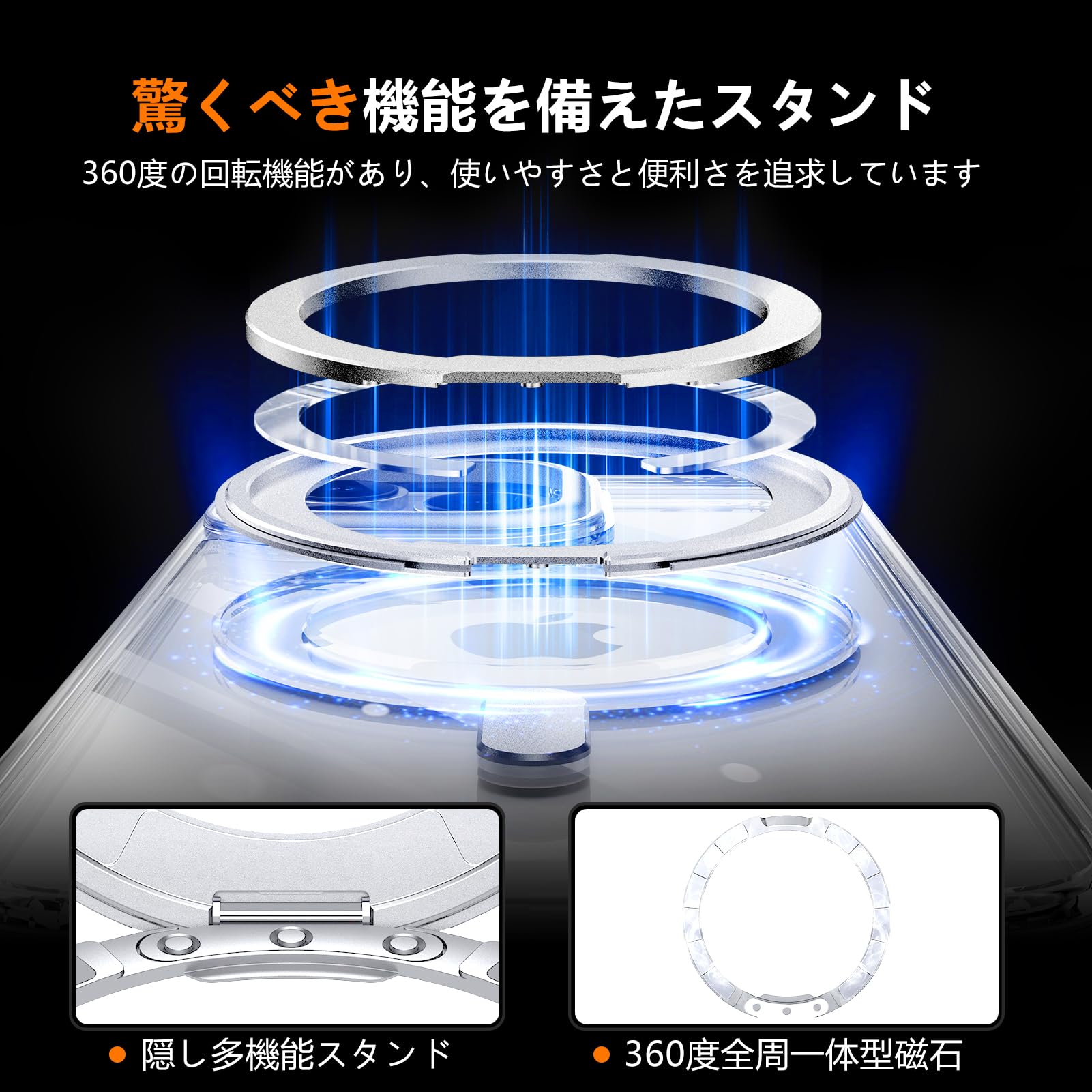 【超磁力、MagSafe対応!】 iphone 16 pro 用 ケース。ケースの内部には360度全周一体型磁石が埋め込まれており、高い吸着力でしっかりと固定しながら充電が可能です。MagSafeアクセサリーもしっかりとケースに吸着します!