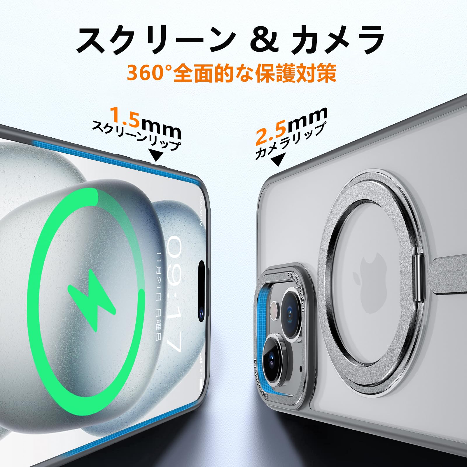 【超磁力、MagSafe対応!】iPhone 13用 ケース。iPhone 14 用 ケース。ケースの内部には360度全周一体型磁石が埋め込まれており、高い吸着力でしっかりと固定しながら充電が可能です。MagSafeアクセサリーもしっかりとケースに吸着します!【①この製品はMagSafeデバイスに対応していますが(Magsafe Walletを使用する際、「探す」機能が表示されない);②QIワイヤレス充電には適していませんので、ご購入前にお考えいただけると幸いです。】