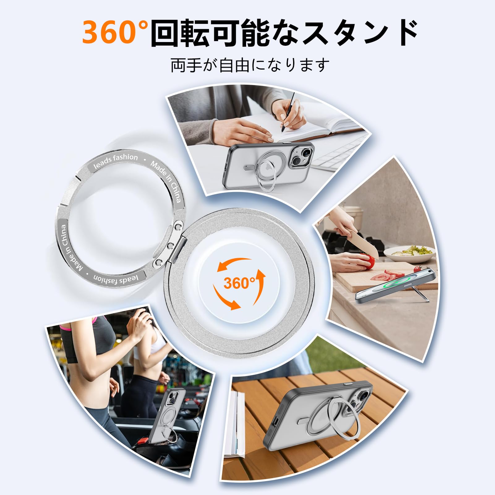 【360度!隠し多機能スタンド】多機能スタンドがあれば、映画鑑賞も横向きで心地よく楽しめ、縦向きにはオンライン学習や仕事が効率的に。好みに応じて簡単に調整でき、垂直または水平に配置しても安定したサポートを提供し、40°から120°まで自由に調整できます。外出先で気軽に使ってリラックスもできる上に、リングやスタンドを持ち歩く必要がない。隠しスタンドの設計で、省スペース性に優れ、収納するときは水平的に置けできて、持ち運びの邪魔になりません。iPhone 13用 ケース。いphone14用ケース。iPhone 14 用 ケース。