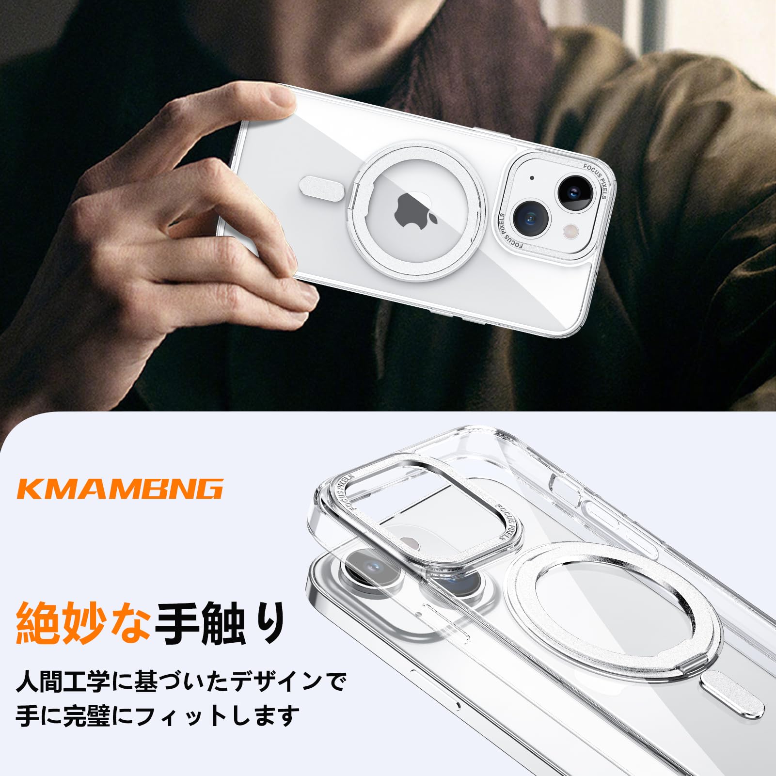 KMAMBNG iPhone 15 用 ケース 縦横両対応 リング 【多機能360度回転スタンド】MagSafe対応 ワイヤレス充電対応 半透明マット スマホケース 米軍規格 耐衝撃 カメラレンズ保護 車載ホルダー対応 6.1インチ アイフォン15 ケース (クリア, iPhone 15)