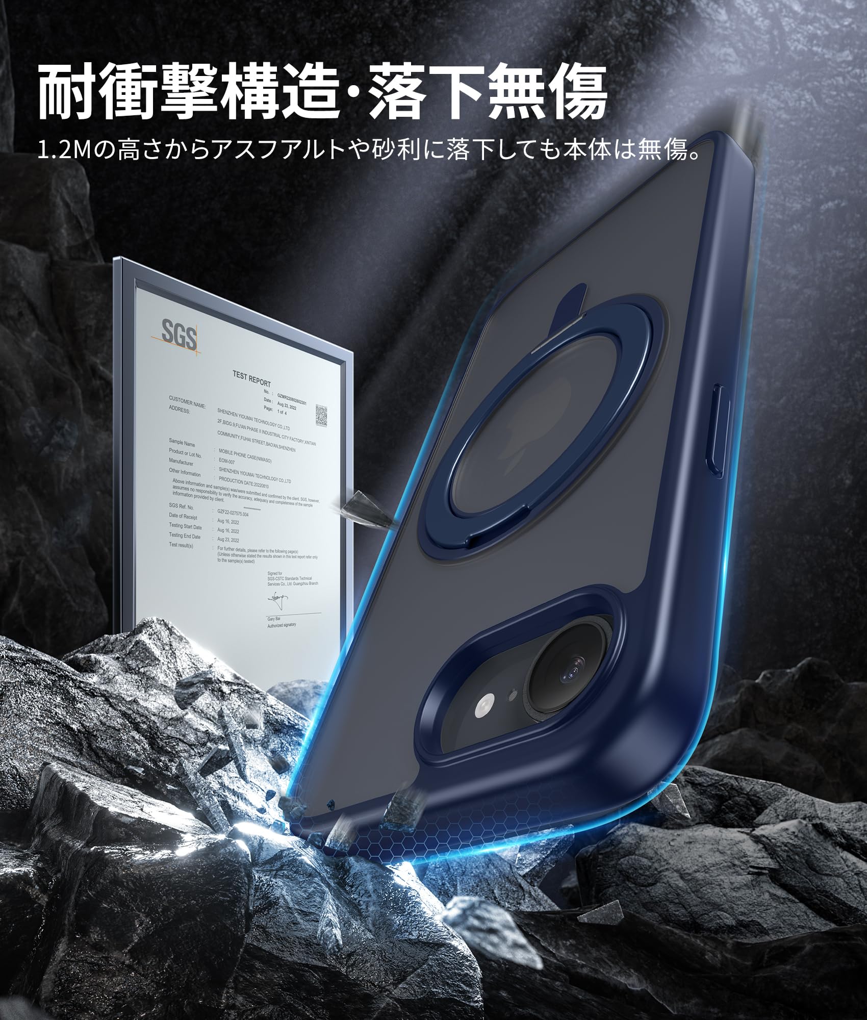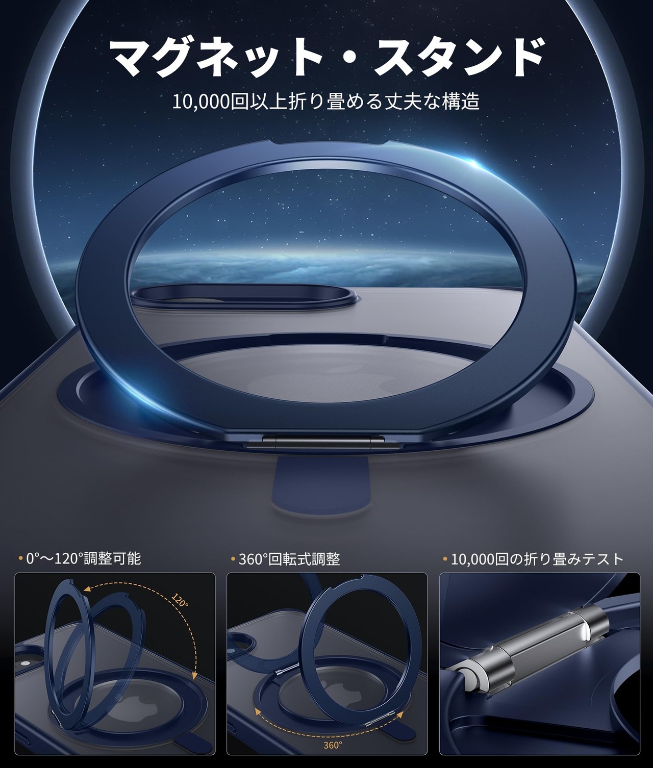 【数量限】NIMASO iPhone 16e 用 ケース 縦横両対応 360°回転スタンドケース MagSafeアクセサリー対応 携帯スマホケース リング マグネット搭載 いPhone 16e 対応 se4 カバー ワイヤレス充電対応 マット感 防指紋 米軍MIL規格 耐衝撃性 磁吸強化 アジャスタブルスタンド アイフォン 16e 対応 (6.1インチ) ブルー (黒羽シリーズ)NSC24L1557 | GIGATERA