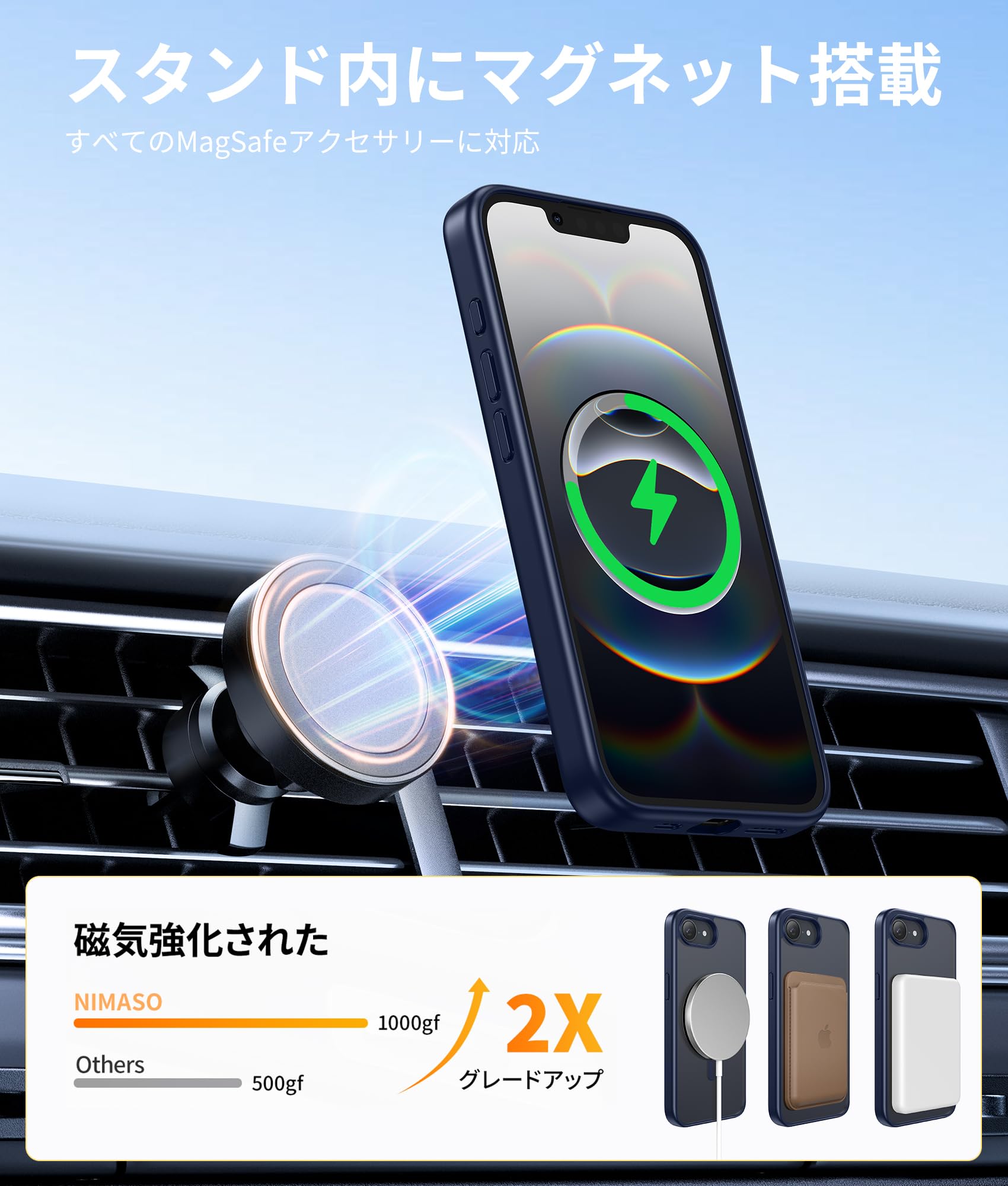 【強力な磁力吸着】iPhone 16e 用 ケースは内部に強力なマグネットを搭載しており、マグセーフ充電器やその他さまざまなマグセーフマグネットアクセサリーにしっかり密着します。どんなマグセーフアクセサリーにも安心してお使いいただけます。