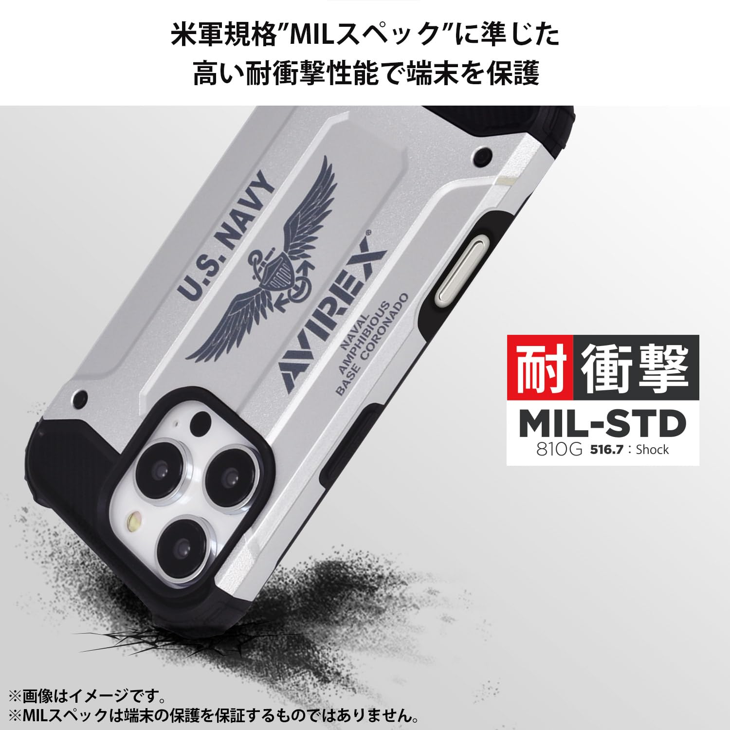 【 AVIREX 正規品 】 iPhone 16 Pro Max ケース 耐衝撃 米軍MIL規格 「 アーミータフ 」 アヴィレックス 背面ケース 6.9インチ アイフォン16プロマックス iPhone16ProMax 用 ブランド スマホケース (シルバー)