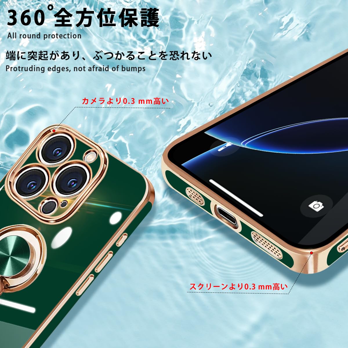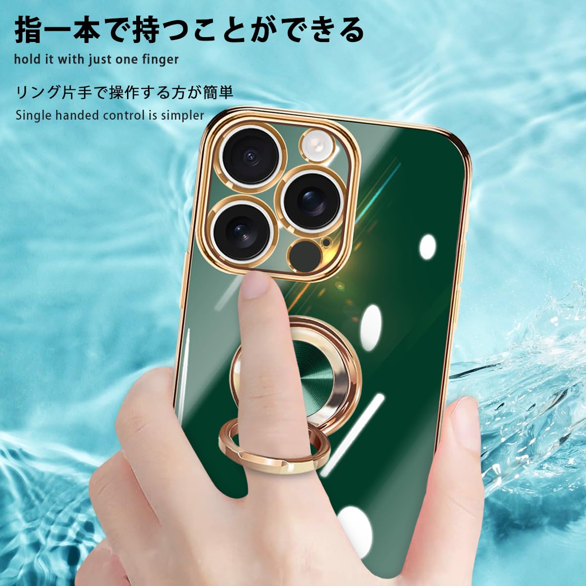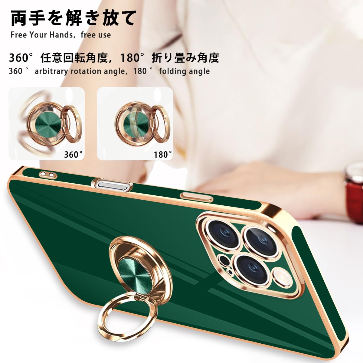 danliangqifei iPhone 16 Pro Max ケース リング 耐衝撃 360°回転 スタンド機能 車載ホルダー対応 カバー アイフォン16Pro Maxスマホケース 携帯ケース 保護カバー レンズ保護 ストラップホール付き(グリーン)