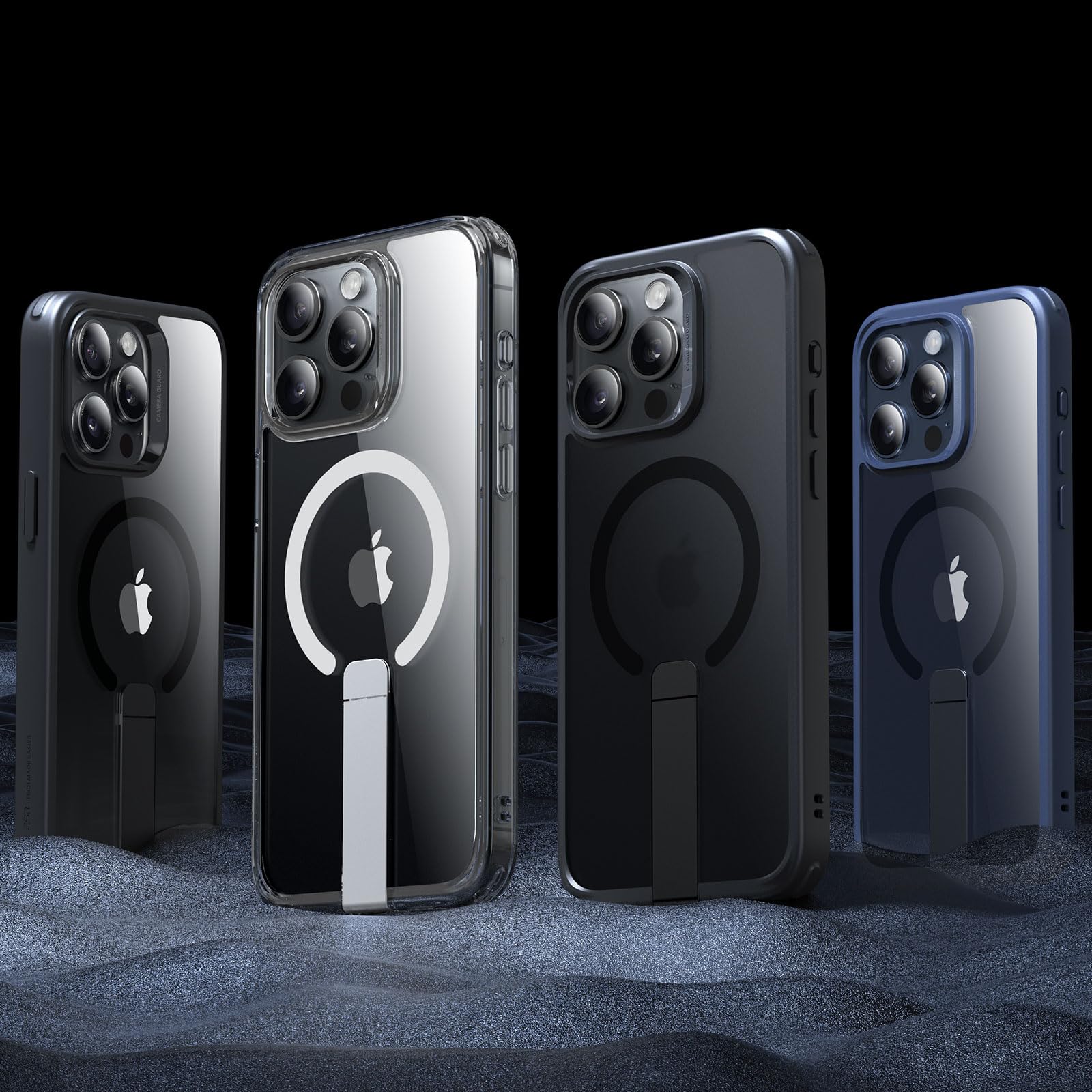 ESR iPhone 15 Pro Maxケース専用 MagSafe対応 自在に調節可能なフリックスタンド 軍用規格落下保護 MagSafe対応 特許取得キックスタンド付きスリム背面カバー Boostシリーズ クリアブルー