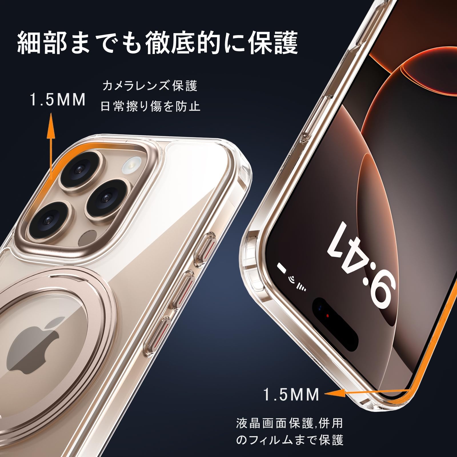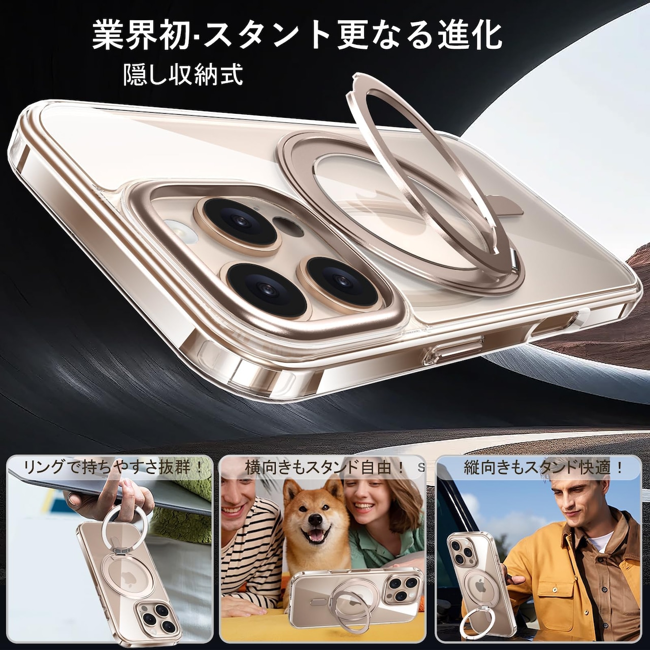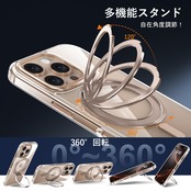 【数量限】iPhone 16 Pro Max 適用 ケース Magsafe対応 アイフォン16プロマックス カバー 360°回転スタンド Uovon スマホケース アイホン 16promax 携帯ケース ワイヤレス充電 車載ホルダー 対応 ストラップ穴付き 透明 指紋防止 黄?防止 ・ クリア デザート | GIGATERA
