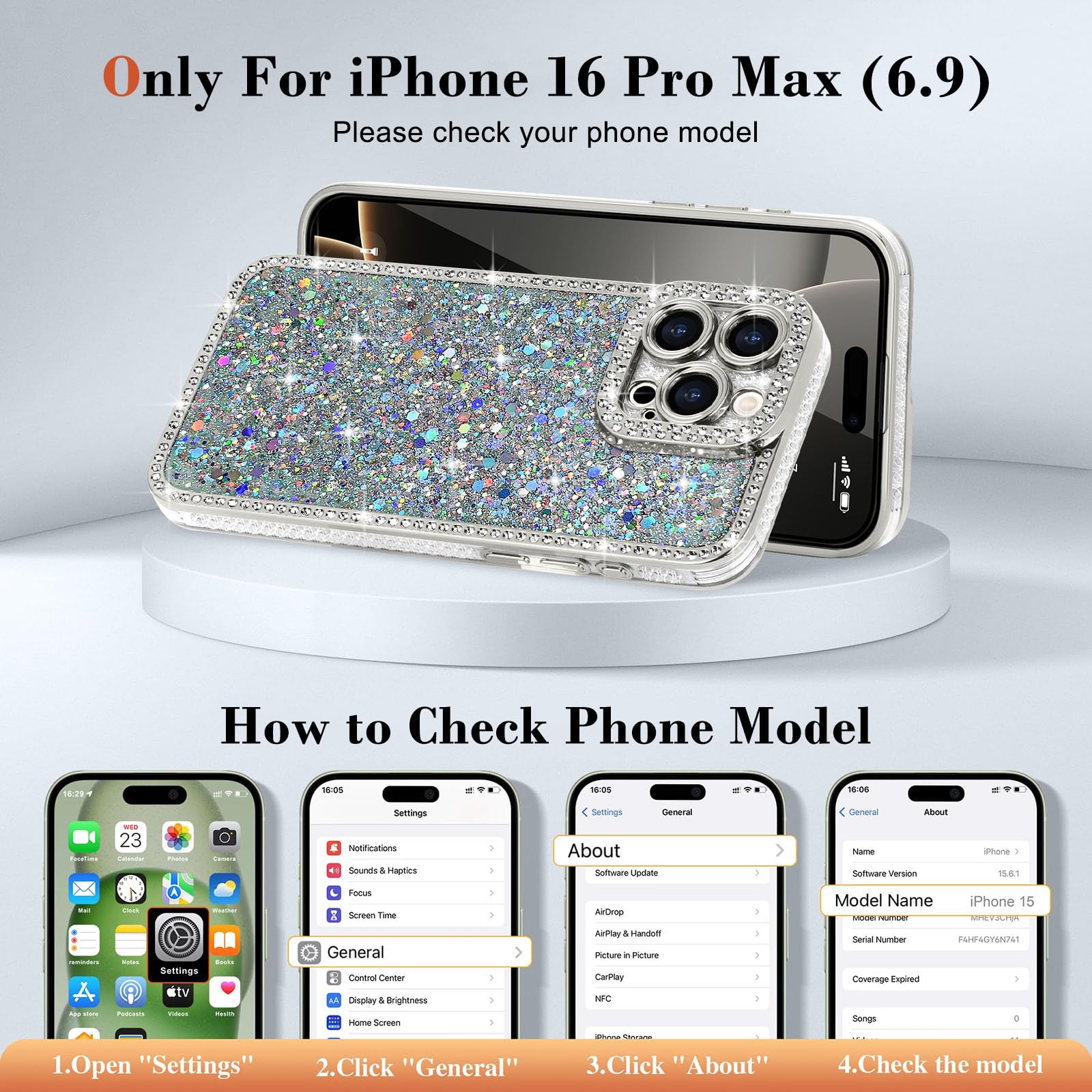 【ボタンと孔位置の精密さ】: このグリッターケースは、全てのボタンや孔の位置が精密に設計されています。音量ボタン、電源ボタン、カメラ、スピーカー、およびその他のポートへの操作・接続は、ケースを装着したままでも容易です。
