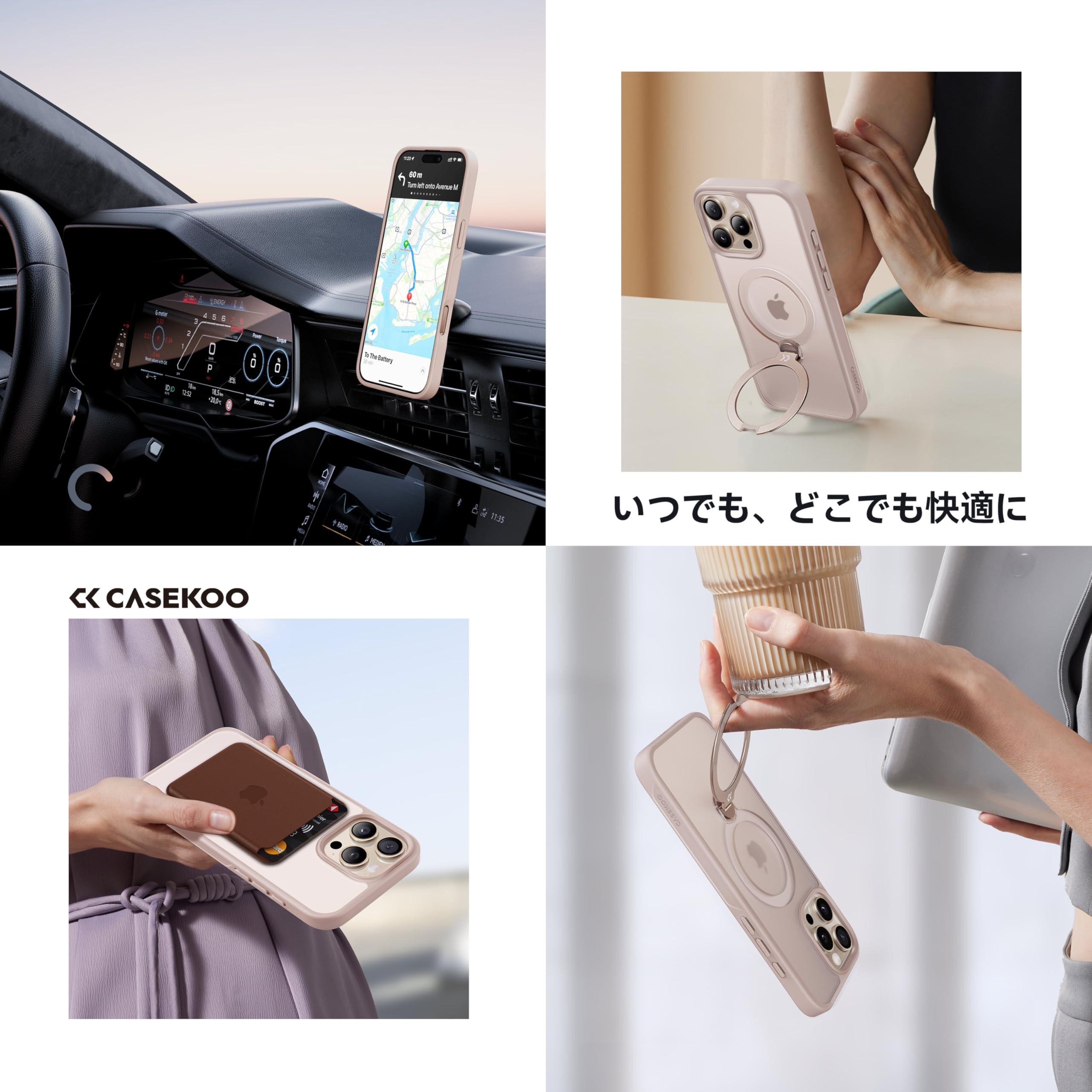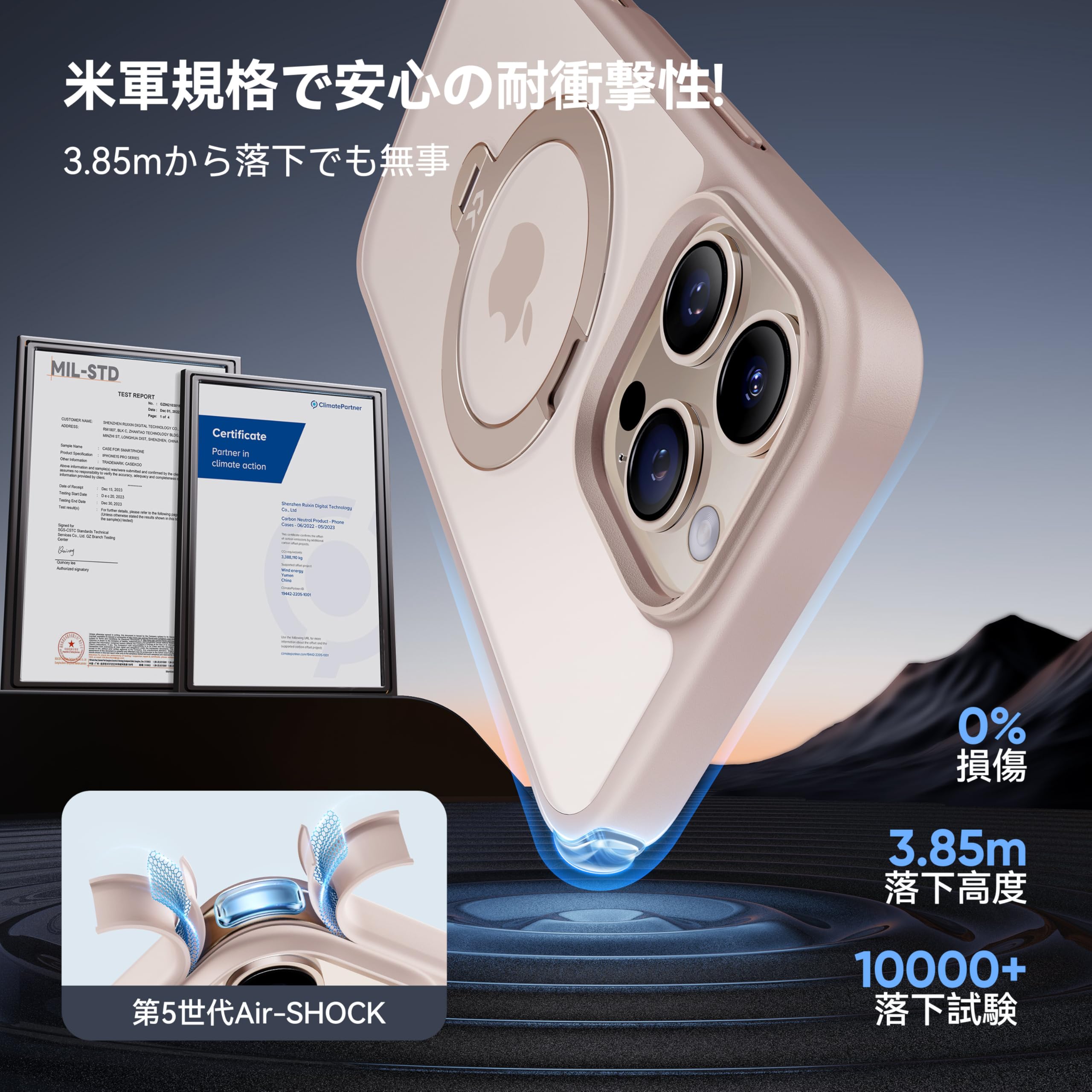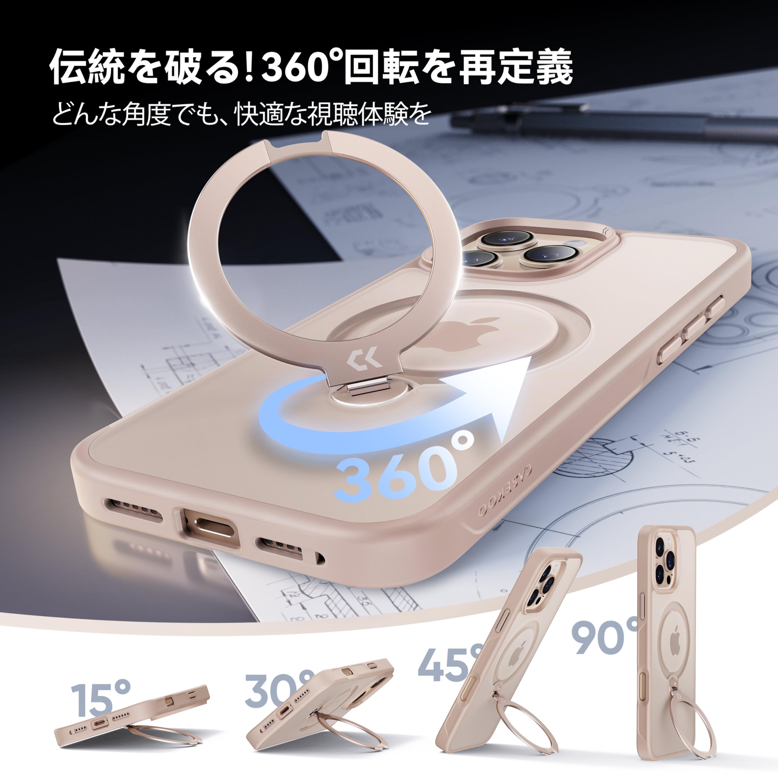 【2025最高傑作&定点360度回転】CASEKOO iPhone 16 Pro 用 ケース 米軍MIL規格 耐衝撃 MagSafe対応 高耐久性【横縦両立・角度自由調整】最大25W急速充電対応 指紋防止/マット仕上げ/黄変防止/半透明 ラップホール付き ワイヤレス充電対応 いphone16pro 用ケース 6.3インチ「MagicStand Pro」(ゴールド)