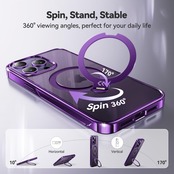 【透き通る上質感・定点360°回転】CASEKOO iPhone 14 Pro Max 用ケース クリア 米軍MIL規格 金属感 フィット感 MagSafe対応 ワイヤレス充電 横縦両立 角度自在 超強磁力 耐衝撃 高耐久性 ラップホール付き 透明 黄変防止 いphone14pro max 用ケース「MagicStand Pro Kosai」(パープル)