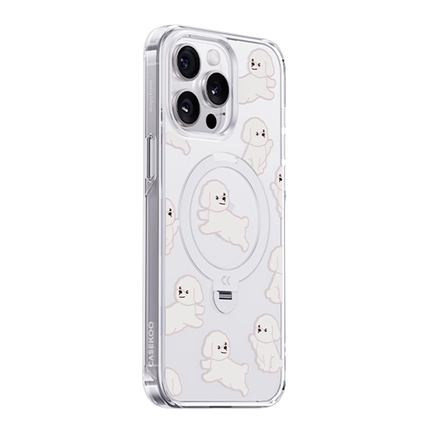 【最新トレンド・360°回転スタンド】CASEKOO iPhone 16 Pro Max 用ケース クリア 比熊犬 ふわふわ 米軍MIL規格 フィット感 MagSafe対応 最大25W急速充電対応 横縦両立 角度自在 超強磁力 耐衝撃 高耐久性 ラップホール付き 透明 黄変防止 いphone16promax 用ケース 6.9インチ「XLine MagicStand Pro」(クリア)