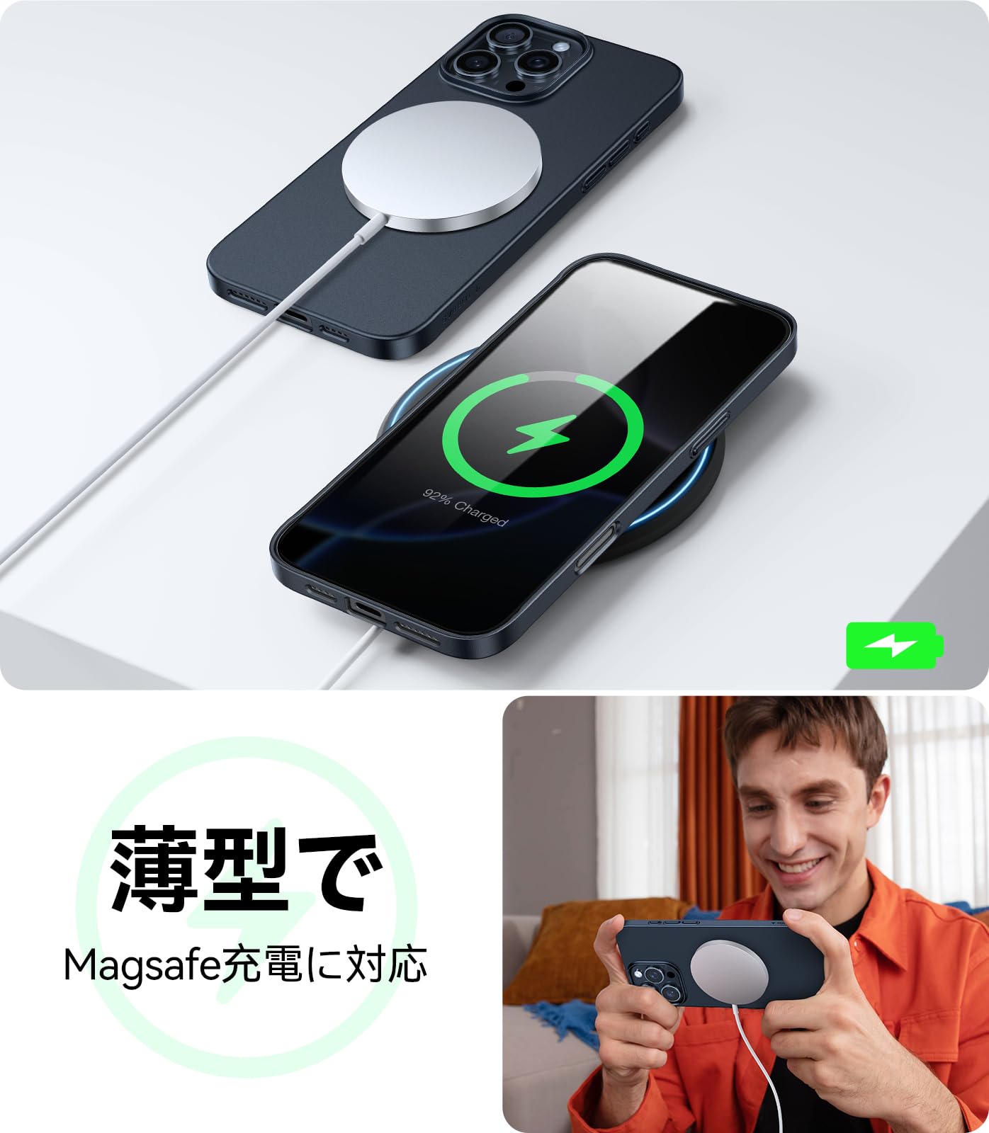 【薄さに恵まれ!磁力は最強】超薄設計で、まるでケースを装着していないかのように、スマホとの距離がほぼゼロに、隠しマグネットがケース内に組み込まれており、外観を損ねることなく、さらに、「Halbach」永久磁石によって磁場強度をアップさせ、最も強力な吸着力を実現。充電体験も大幅に向上し、使用感が向上。対応機種:iPhone 15 Pro 用 ケース。