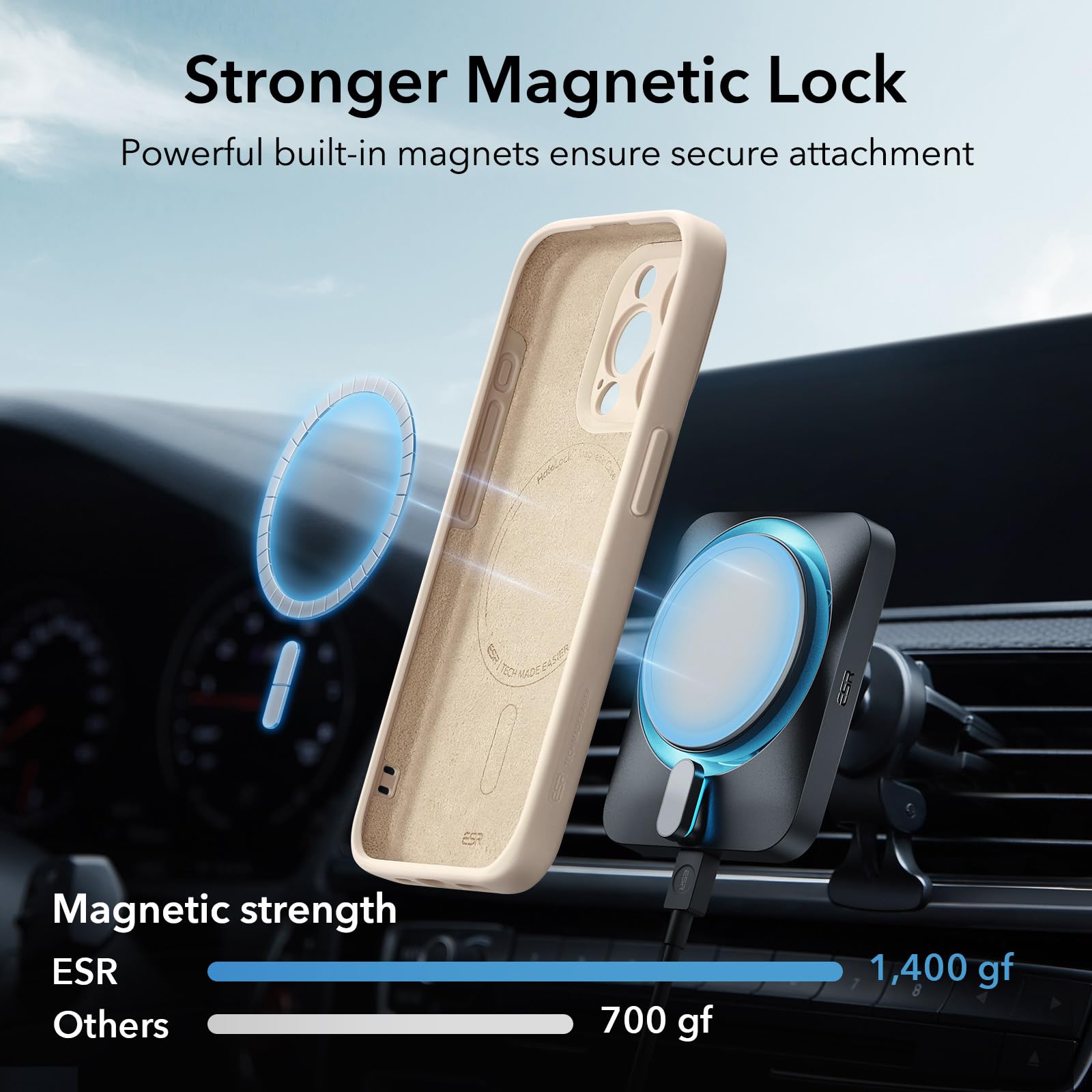【MagSafe対応】1,200gの保持力を持つ強力な内蔵マグネットが、すべてのMagSafeスタイルのアクセサリーを確実にロックします。