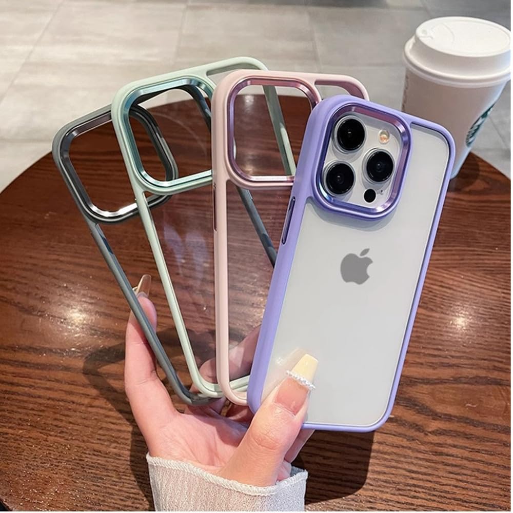 iPhone15Pro ケース ストラップホール付き クリア 透明 カバー 2色 配色 薄型 可愛い レディース iPhone 15 Pro カバー 背面ケース ハードケース (15Pro, グレー)
