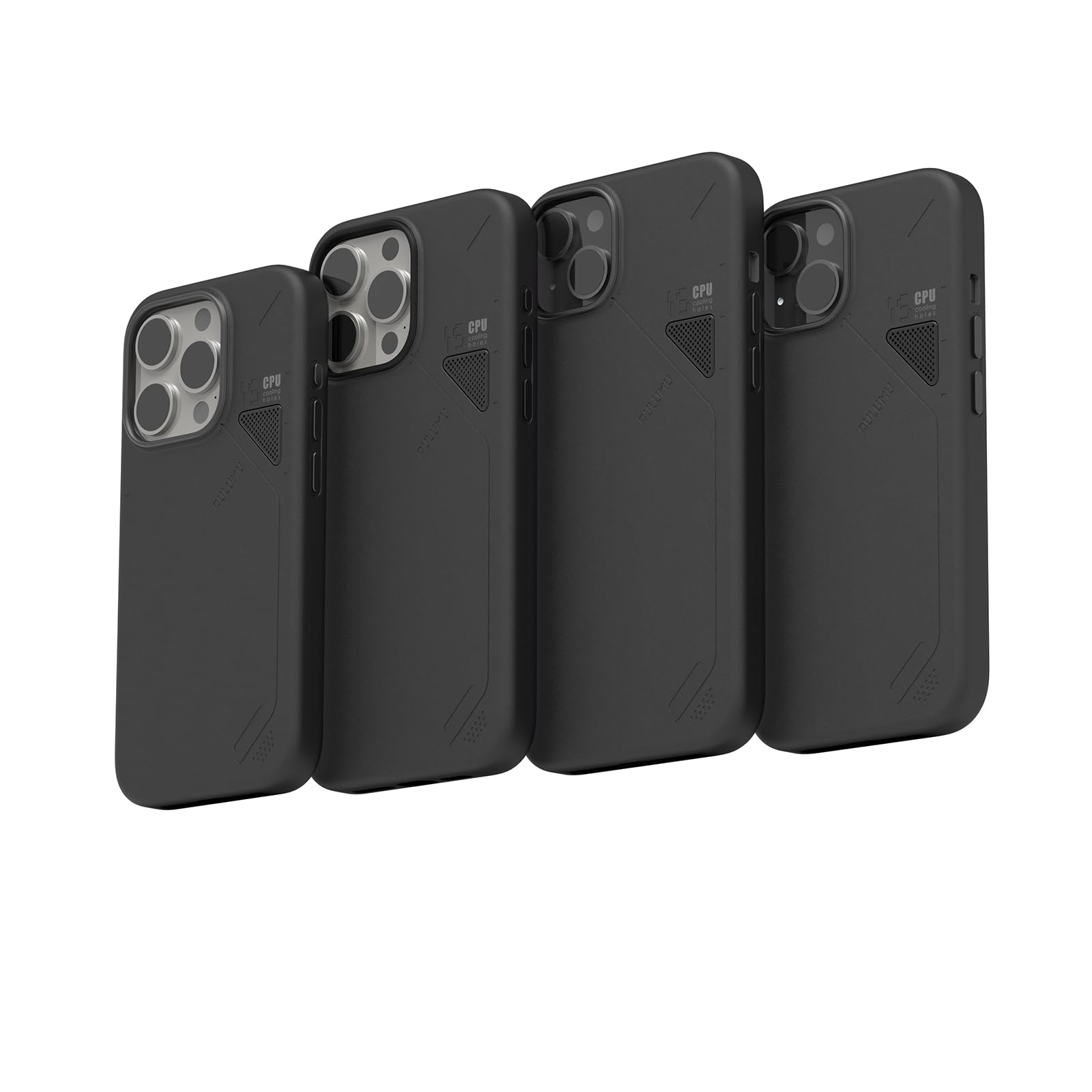 Aulumu A15 iPhone 15 Pro用 ヴィーガンレザー マグネットケース クールデザイン窓付き MagSafe対応 金属ボタン ブラック