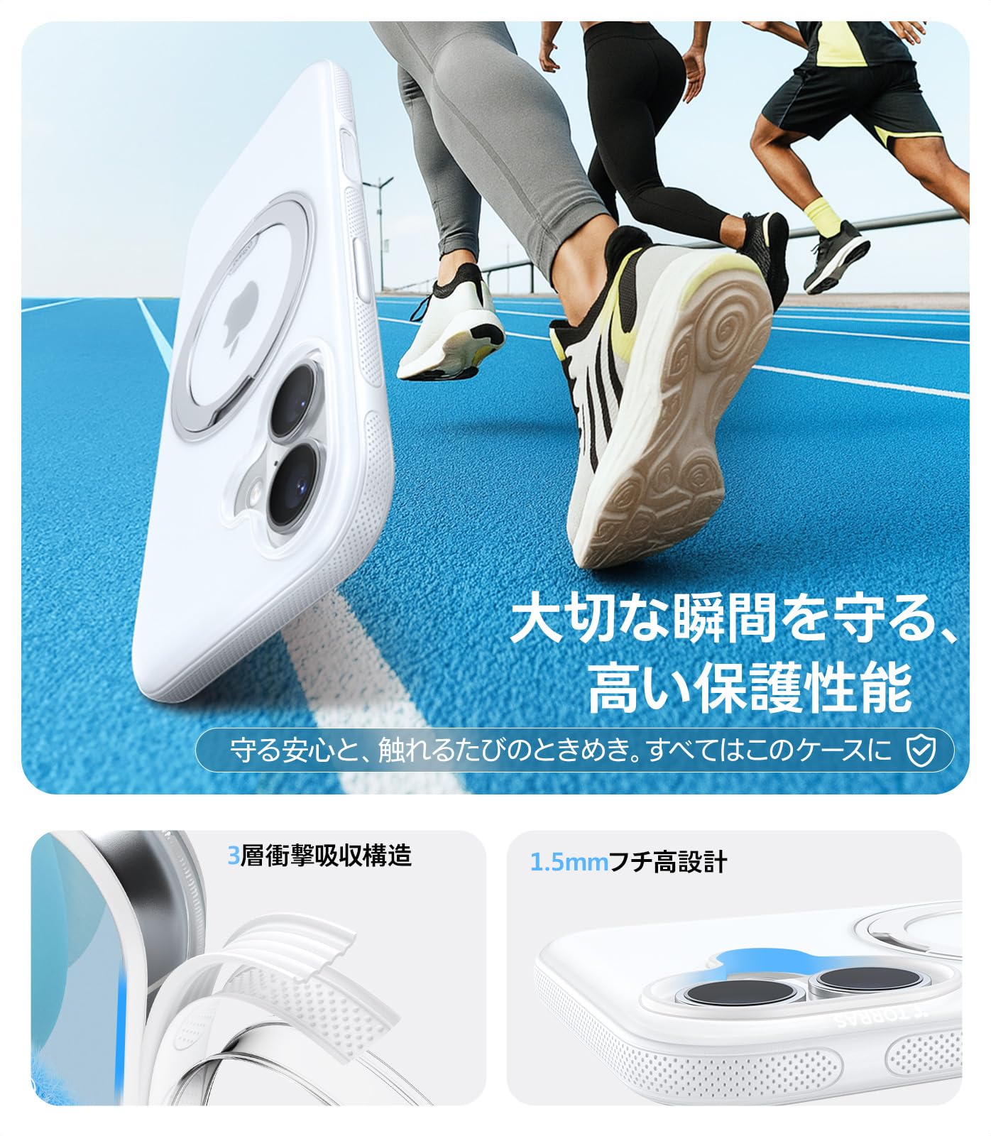 TORRAS iPhone 16 用 ケース カメラコントロールボタン付き【カチカチ・多機能360度回転スタンド】 縦横両対応 マグネット搭載 MagSafe対応 米軍MIL規格耐衝撃 リング 指紋防止 黄変防止 マグセーフ対応 レンズ保護 滑り止めドット模様 手持ち撮影 安定性 両眼 6.1インチ「Ostand R Fitness」(純白)