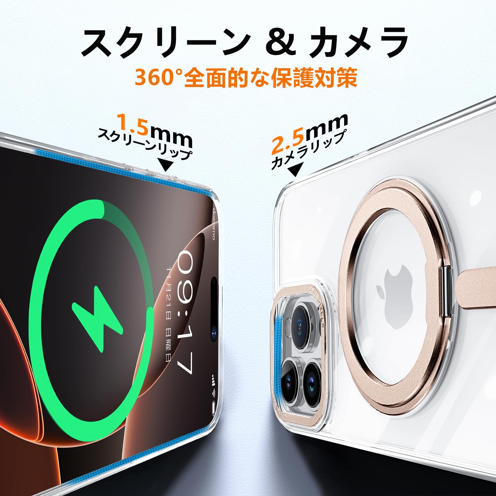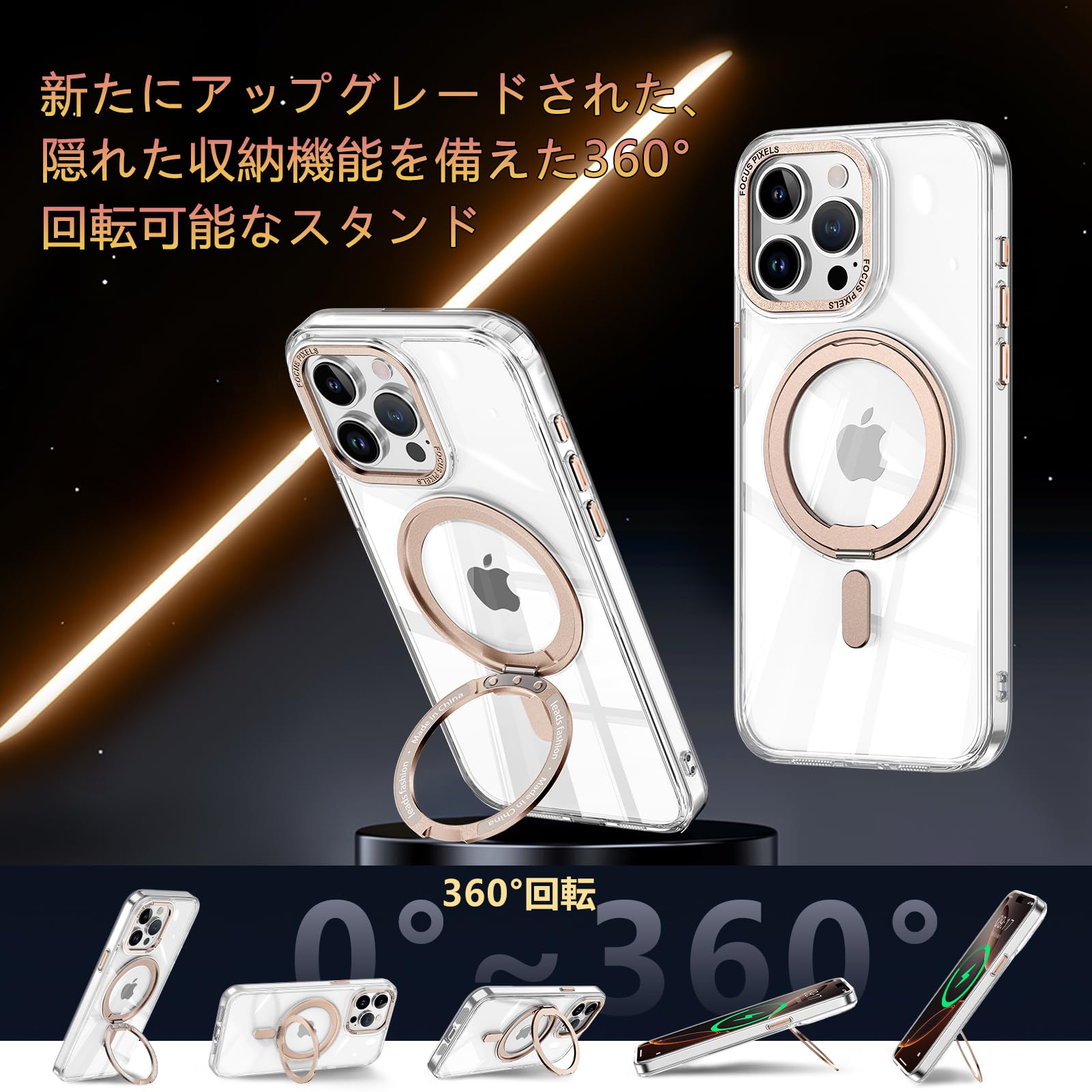 【超磁力、MagSafe対応!】iPhone 15 Pro用ケース。ケースの内部には360度全周一体型磁石が埋め込まれており、高い吸着力でしっかりと固定しながら充電が可能です。MagSafeアクセサリーもしっかりとケースに吸着します!
