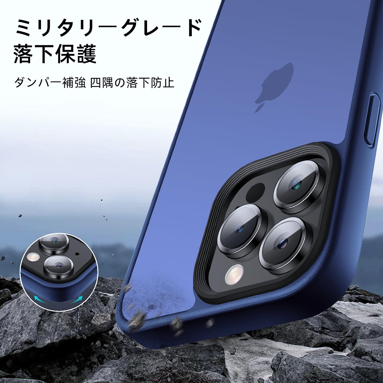 【新着】COSOIK iPhone 15 Pro 用 ケース 半透明 衝撃吸収 米軍MIL規格取得 マット感 黄ばみなし レンズ全面保護 耐衝撃ストラップホール付き 6.1インチ アイフォン 15 Pro用カバーラネイビー | GIGATERA