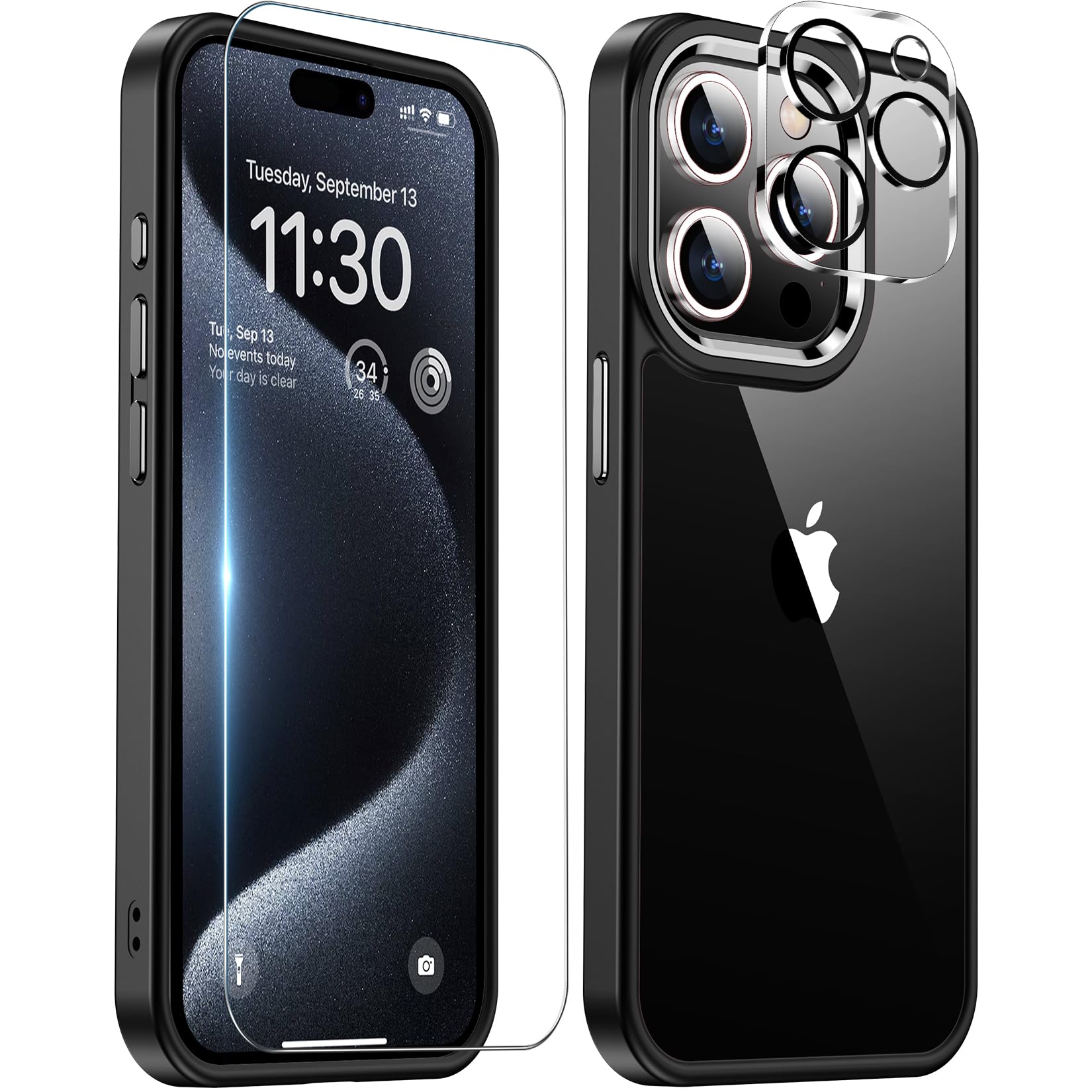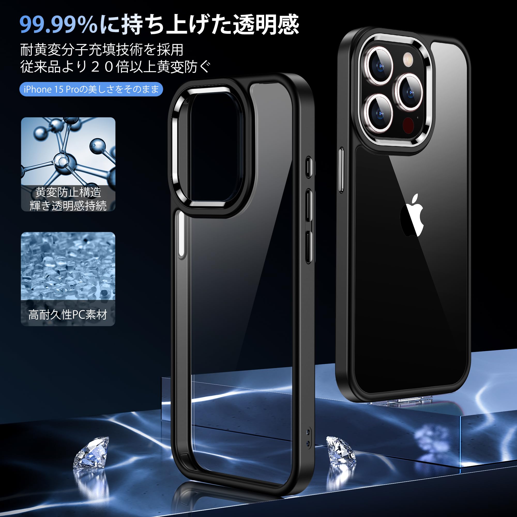 XIWXI iPhone15Pro 用 ケース ブラック 耐衝撃 カメラレンズ保護付き アイフォン15Pro 米軍MIL規格 ストラップホール付き 耐久性 黄変防止 アイホン15プロ ワイヤレス充電対応 SGS認証 スマホケース カバー 6.1インチ
