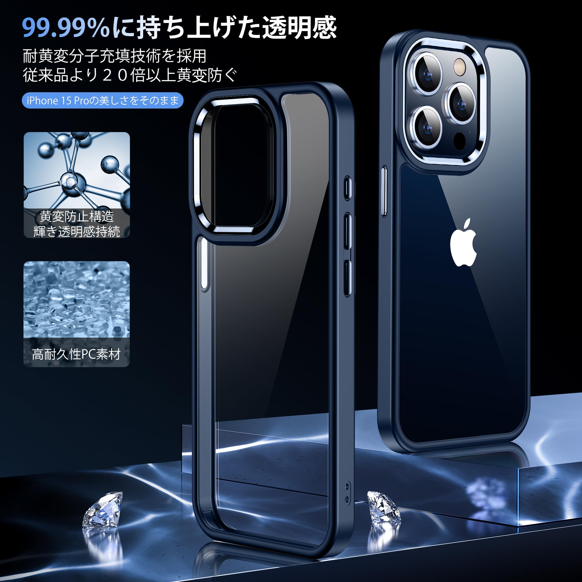 XIWXI iPhone15Pro 用 ケース ブルー 耐衝撃 カメラレンズ保護付き アイフォン15Pro用 米軍MIL規格 ストラップホール付き 耐久性 黄変防止 アイホン15プロ用 ワイヤレス充電対応 あいふぉん15Pro用 SGS認証 スマホケース カバー