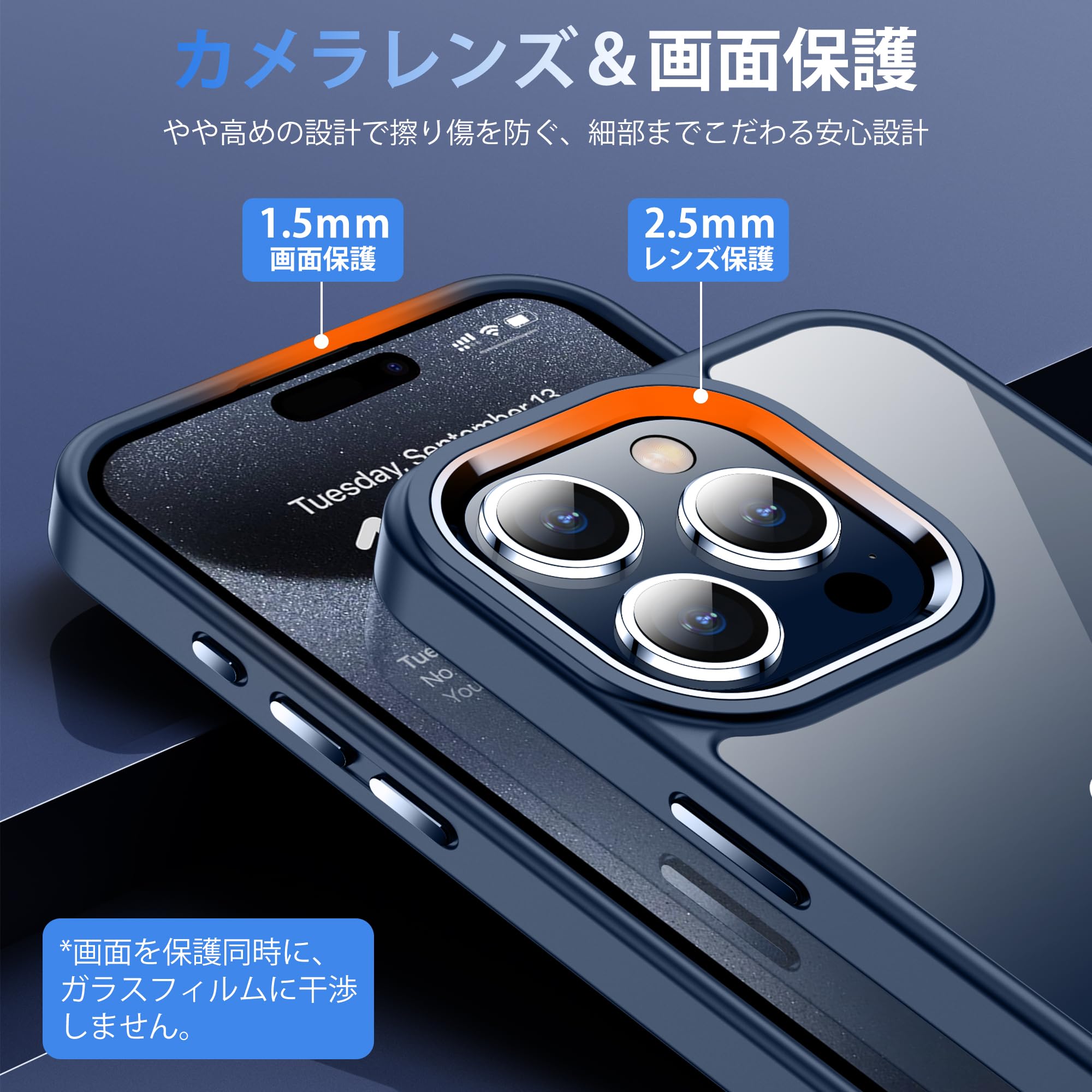 【圧倒的耐衝撃・バッチリ防御】角部分にAIRクッション搭載により、落下時の衝撃を瓦解・吸収する効果があり、いくら落としても布団に飛び込んだみたいな感触を与えます。背面は耐摩耗性に強いポリカとダメージ緩和力のあるTPU素材を上手く組み合わせた保護ケースはiPhone 15 proをいかなる衝撃からも守り通すために生まれた優れものです。落としたり、ぶつけたりしても心配ありません。