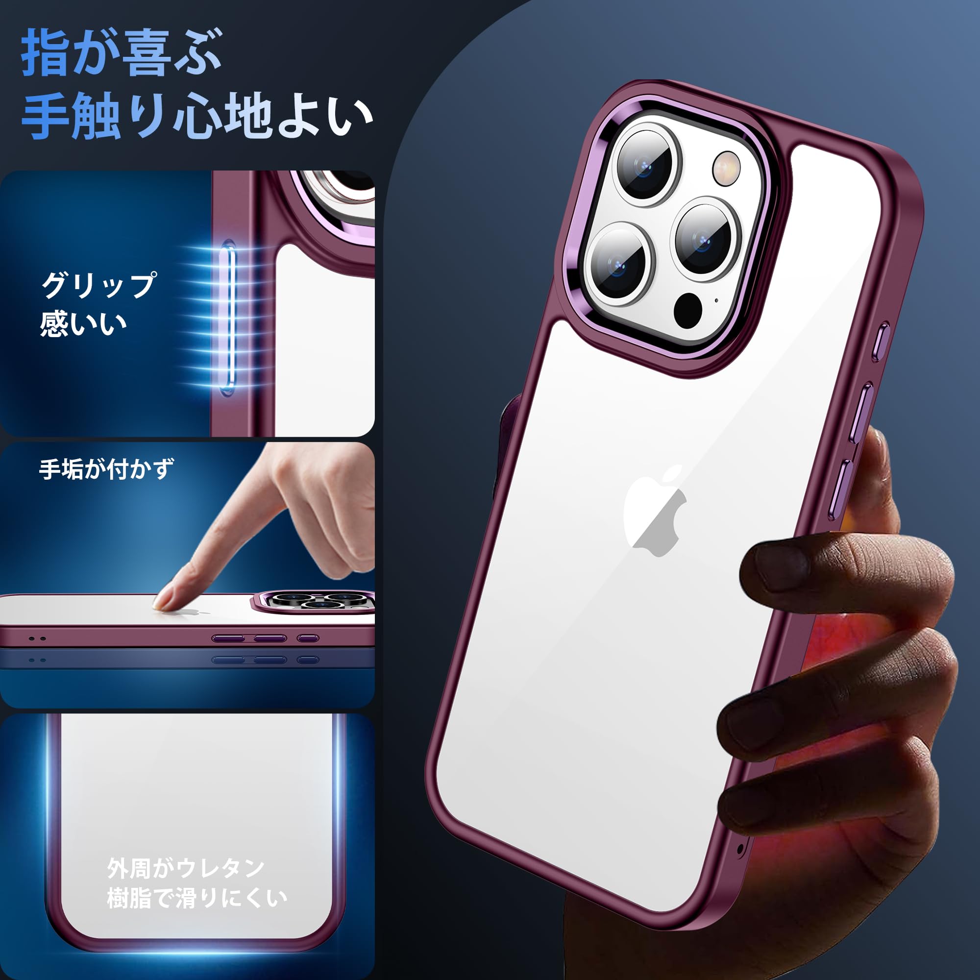 【透明感漂う・指紋防止】 背面に高透明度と指紋軽減を両立した特殊PC素材を採用、背面の光透過率は99%、透き通った高い透明度を誇り、アイホン15Pro の美しさをそのままに楽しめます。厳選したポリカーボネート素材で、本来の崇高な美しさと高級感を損なわなく、高精度表面処理またケース全面に防汚バイオニック技術を使用したことで、指紋を防げ、指紋や汚れが付いても、水洗いと布で軽く拭くとピカピカになります。いつものスマホに上品さをプラス。