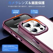 【液晶画面・カメラレンズ保護】アイフォン15Pro本体の曲線に従って高低差設計になります。フチをわずかに高く設計することで、外部と直接接触の傷つきを避けます。カメラレンズの周囲2.5mm高く、外部と直接接触の傷つきを避けます。カメラレンズをキズから保護できます。液晶画面より1.5mm高くなり、画面を保護同時に、ガラスフィルムに干渉しません。
