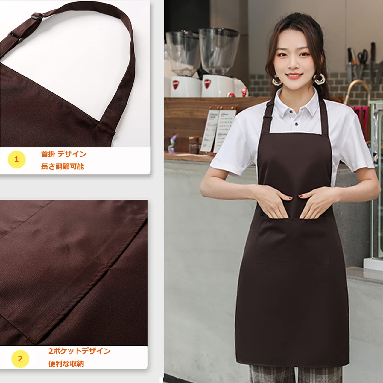 [ZIRAIFEN] エプロン 首掛け おしゃれ 男女兼用 調節可能 大容量ポケット付き 汚れにくい シワ防止 キッチン ダイニングルーム コーヒーショップ 家事に最適