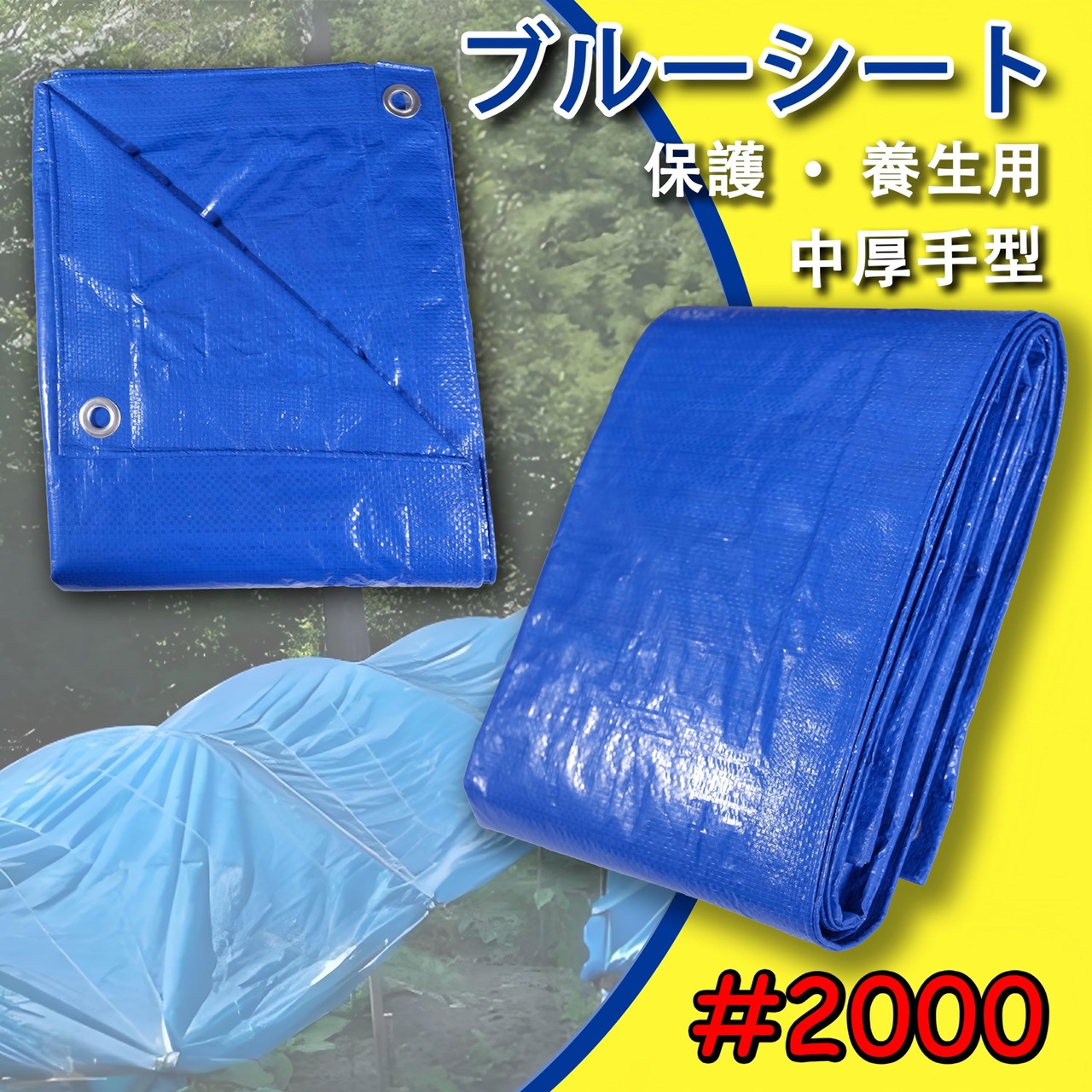 【中厚#2000】比較的厚みがあり、レジャー・アウトドアから日曜大工、工事現場の目隠し、資材保護 、養生、短期間の屋外の野積みなど