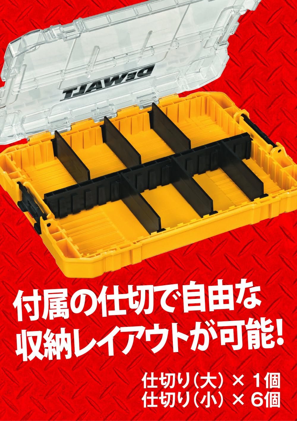デウォルト(DEWALT) タフケース (中) デバイダー付き オーガナイザー 工具箱 収納ケース ツールボックス 透明蓋 脱着トレー 積み重ね収納 ネジ ビット 小物入れ