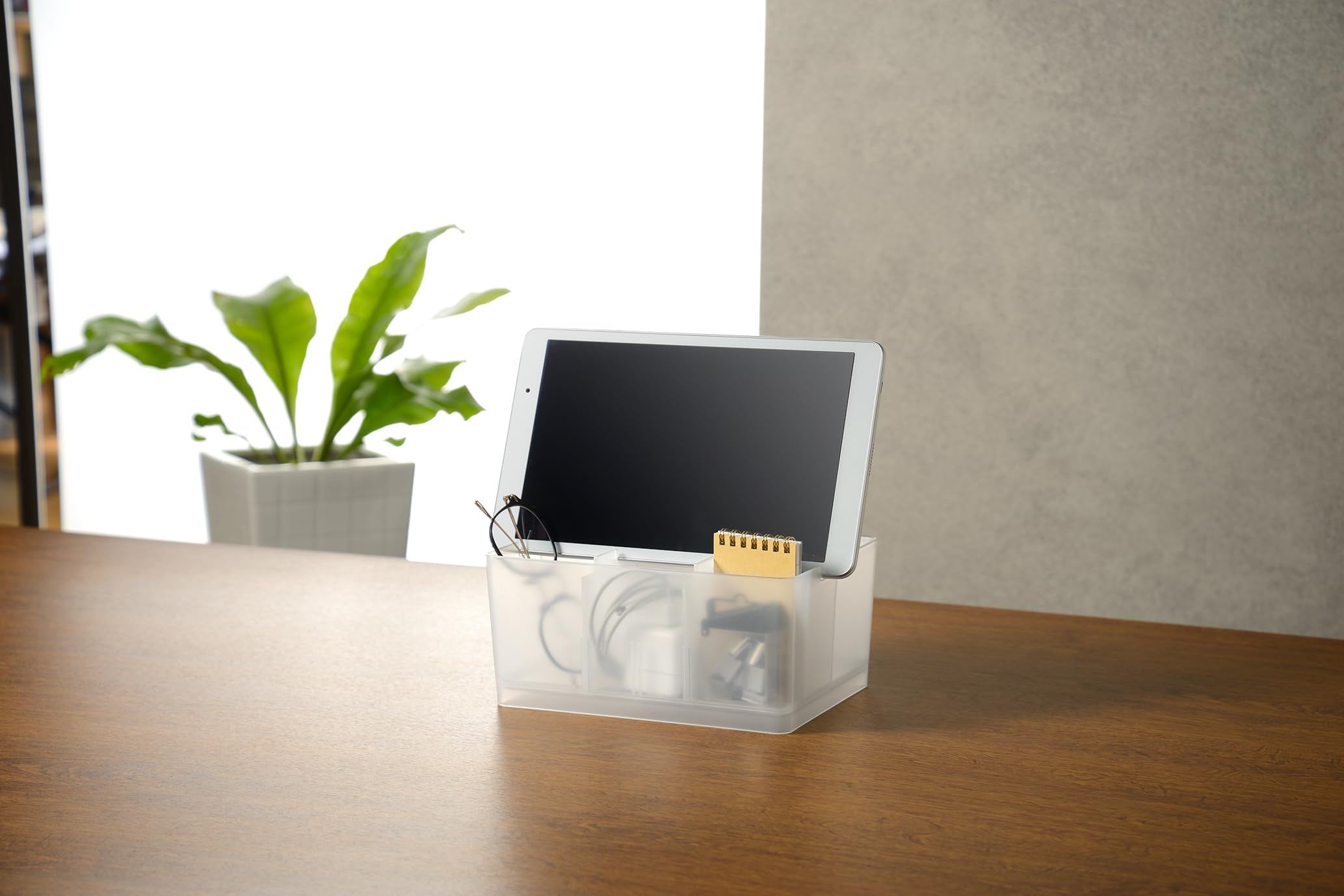 ●タブレット・スマートフォンを立てかけられるので、テレワークなどに便利です。