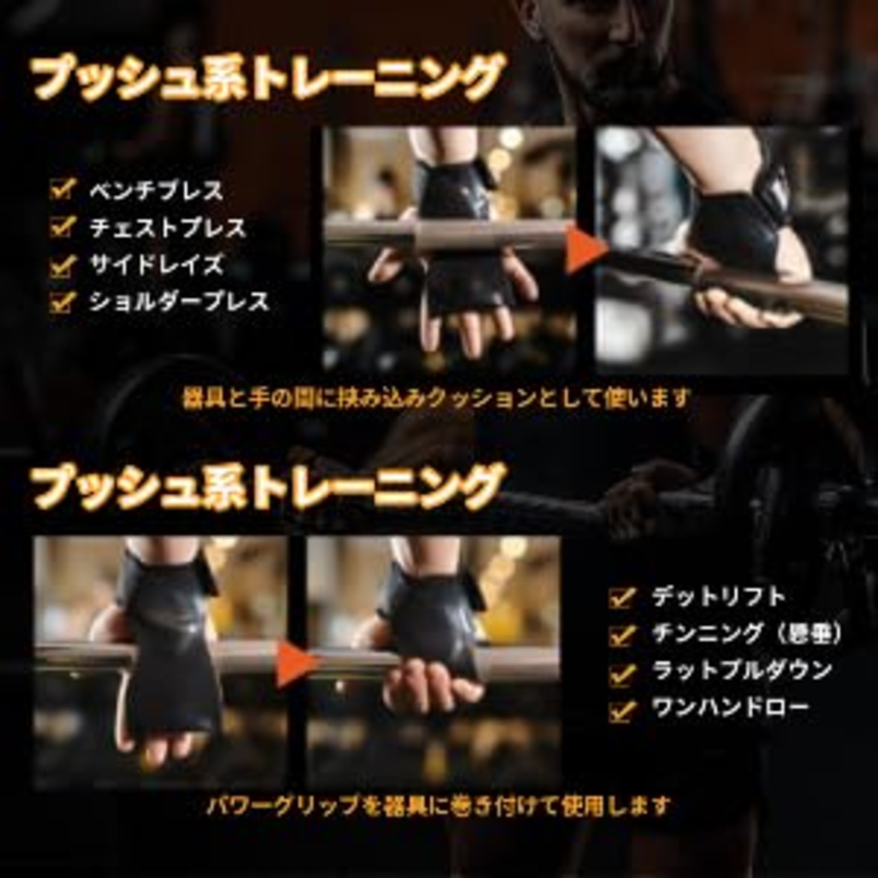 ◎【プッシュ系とプル系トレーニングはもちろん、懸垂補助としても使用可能】チェストプレスやサイドレイズなどのプッシュ系トレーニングの際には、器具と手の間に挟み込みクッションとして使います。デッドリフトやチンニング(懸垂)などのプル系トレーニングの際には、パワーグリップを器具に巻き付けて使用します。滑り止めの効果があるだけではなく、手首にかかる負荷も軽減します!