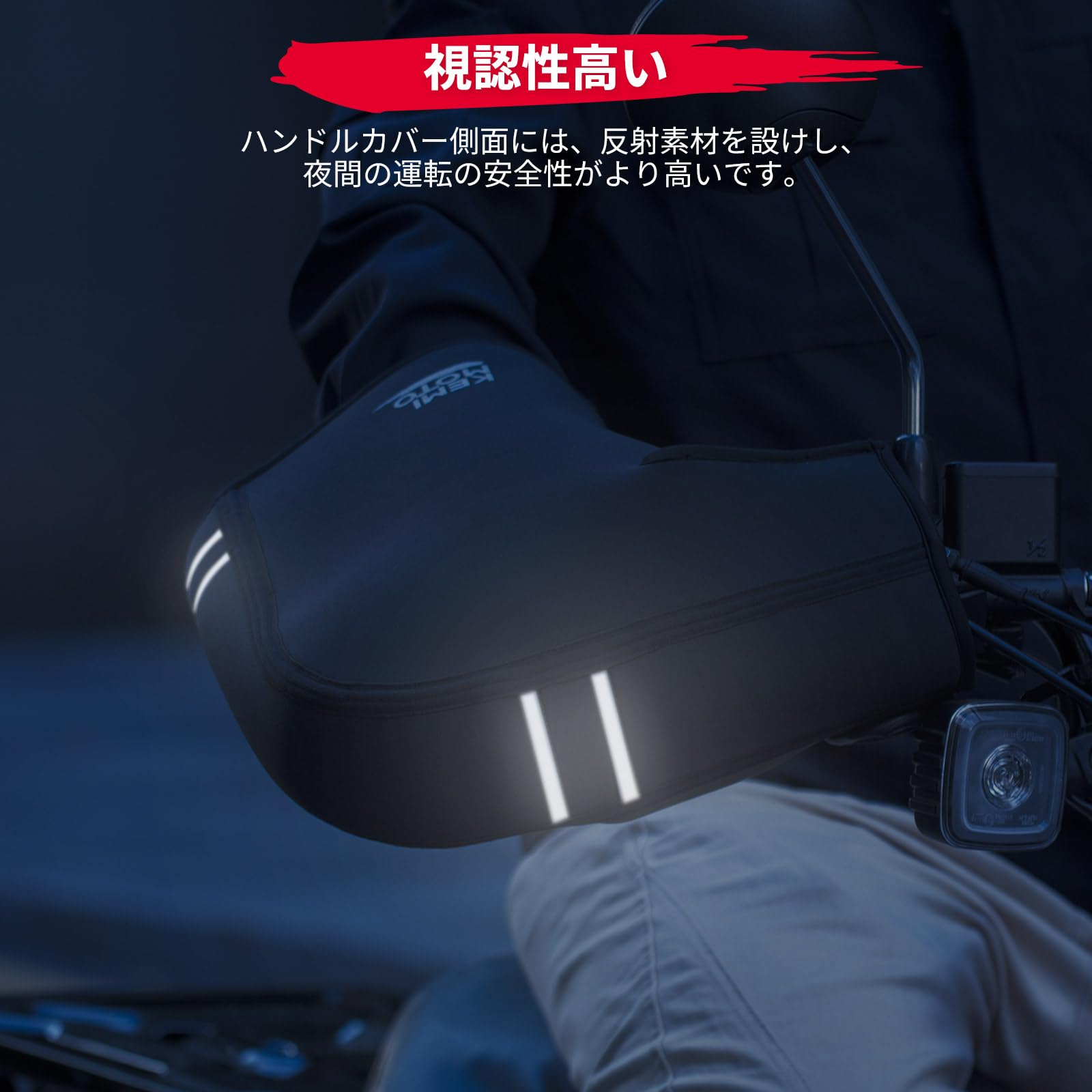 KEMIMOTO バイク ハンドルカバー スクーター 防風 防水 pcx 125cc xmax ミニバイク オートバイ 原付バイク 洗える 秋冬 防寒対策 防寒具 ハンドルウォーマー フリーサイズ ブラック