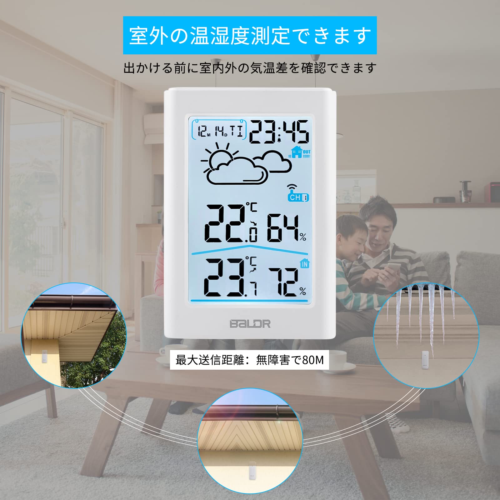 【人気】温湿度計 室内 室外 デジタル ワイヤレス 温度計 湿度計 外気温湿度計 高精度 天気予報 LCD大画面 バックライト 最高最低温湿度 温度湿度傾向図 華氏/摂氏表示 置き掛け両用 コンパクト 一つセンサー付き 乾燥対策 熱中症 赤ちゃん 年寄り 体調健康管理 アラーム&スヌーズ おしゃれ 日本語説明書 | GIGATERA